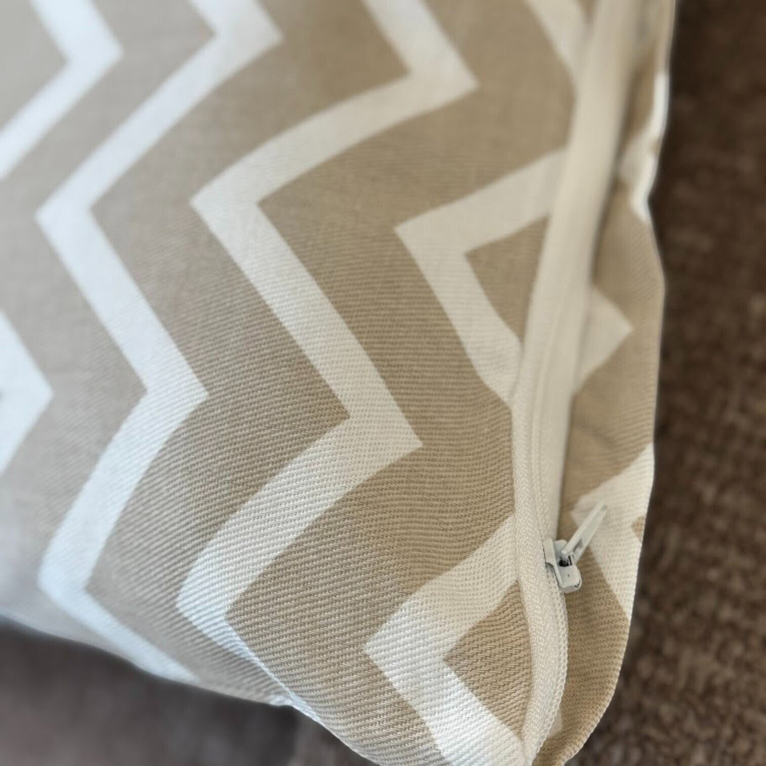 Spilvendrāna Leo – dinamika un dabiskums vienā akcentā. Spilvendrāna Leo (40×40 cm) ir izgatavota no 100% kokvilnas, piedāvājot dabīgu komfortu un izturību. Tās dizainu rotā moderns zigzagots raksts baltā un bēšā krāsā, kas piešķir interjeram gan vizuālu dzīvīgumu, gan harmonisku noskaņu. Lieliski iederas gan skandināviska, gan mūsdienīga stila telpās – ideāls akcents dīvānam, krēslam vai gultai.