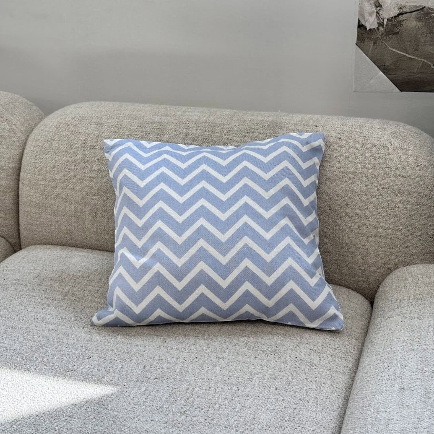 Spilvendrāna Leo piešķirs jūsu interjeram vieglumu un ritmu, pateicoties zilajai zigzagveida apdrukai uz baltas pamatnes. Tā ir izgatavota no 100% kokvilnas, kas nodrošina patīkamu pieskārienu un dabisku elpojamību.