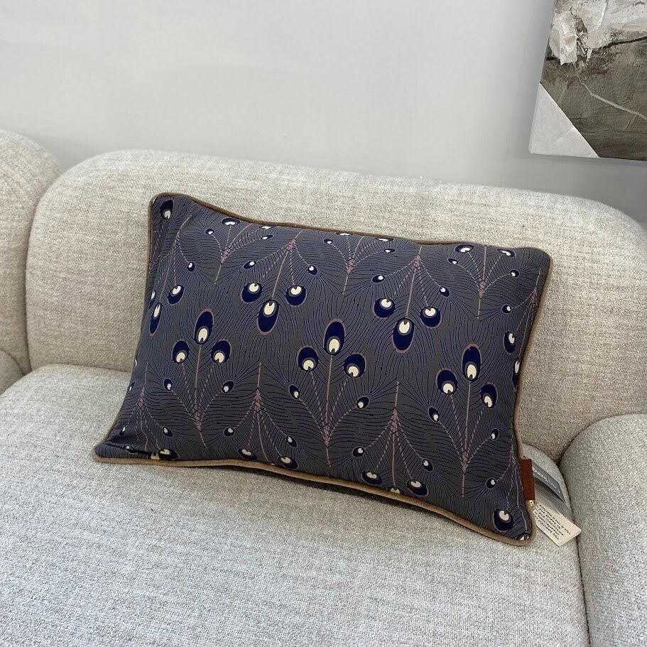 Spilvendrāna Peacock – izsmalcināts roku darbs ar raksturu. Spilvendrāna Peacock (40×60 cm) no zīmola Cozy Living Copenhagen ir elegants un rūpīgi darināts dekors, kas piešķir interjeram greznu noskaņu. Izgatavota no 100% kokvilnas, tā rotāta ar pāva spalvu apdruku uz pelēka fona – harmonisks, bet pamanāms dizains. Spilvendrānas malas izcelts ar smalku samta apdari, kas piešķir papildus tekstūru un šarmu. Roku darinājums, kas apvieno kvalitāti, detaļu rūpību un dāņu dizaina estētiku.