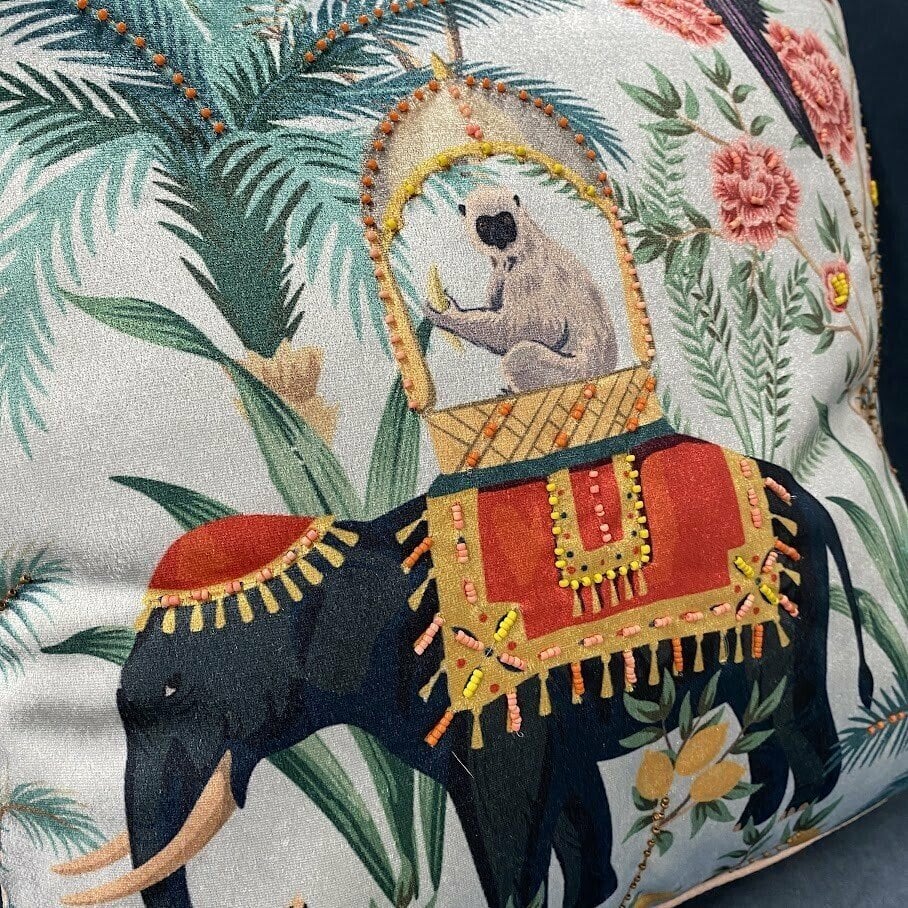 Šis divpusējais samta spilvens būs lielisks akcents gan uz jūsu dīvāna, gan guļamistabā. Viena puse izšūta ar krāsainu rakstu un pērlītēm, bet otra gluda, vienkrāsaina. Noņemams pārvalks ar rāvējslēdzēju
