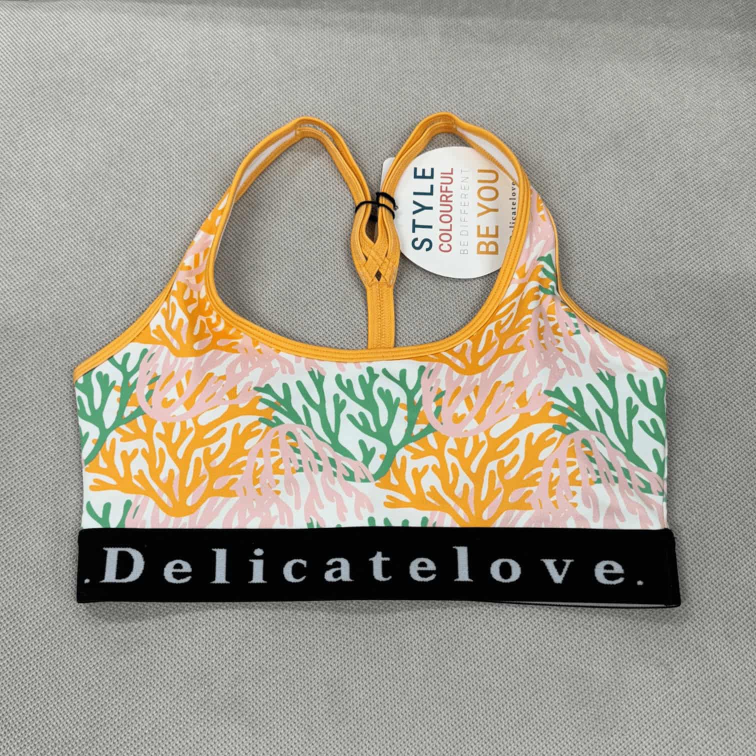 Delicate Love sporta krūšturis ir piemērots sportiskām, kustīgām aktivitātēm vai ikdienas darbiem. Tā materiāls ir elpojošs un elastīgs. Tajā nav stīpiņa, tāpēc krūšturis ir arī ērts. Tam ir šaura mugurdaļa, mīkstas bļodiņas un vienots raksts.