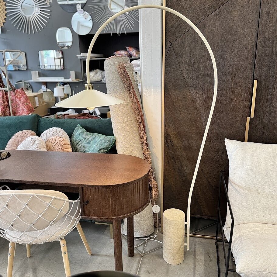 Stāvlampa Cora ar travertīna pamatni – unikāls akcents Tavam interjeram.