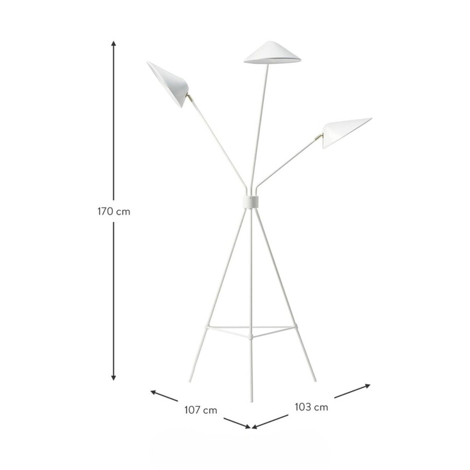 Industriāla stila stāvlampa Neron ar 3 gaismas avotiem, ar kuriem ir iespēja izgaismot dažādas vietas un lietas interjerā.