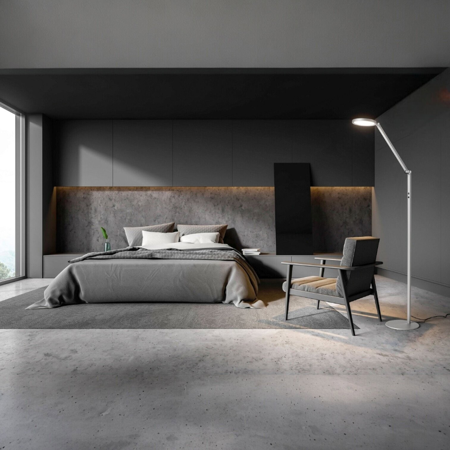 Pateicoties taustiņa dimmerim ar 4 līmeņiem, stāvlampa REGINA ir pilnībā regulējama un pielāgojama jūsu vajadzībām. Krāsas temperatūru iespējams iestatīt no silti baltas līdz dienasgaismas baltai, ļaujot radīt ideālu atmosfēru lasīšanai, atpūtai vai darbam.