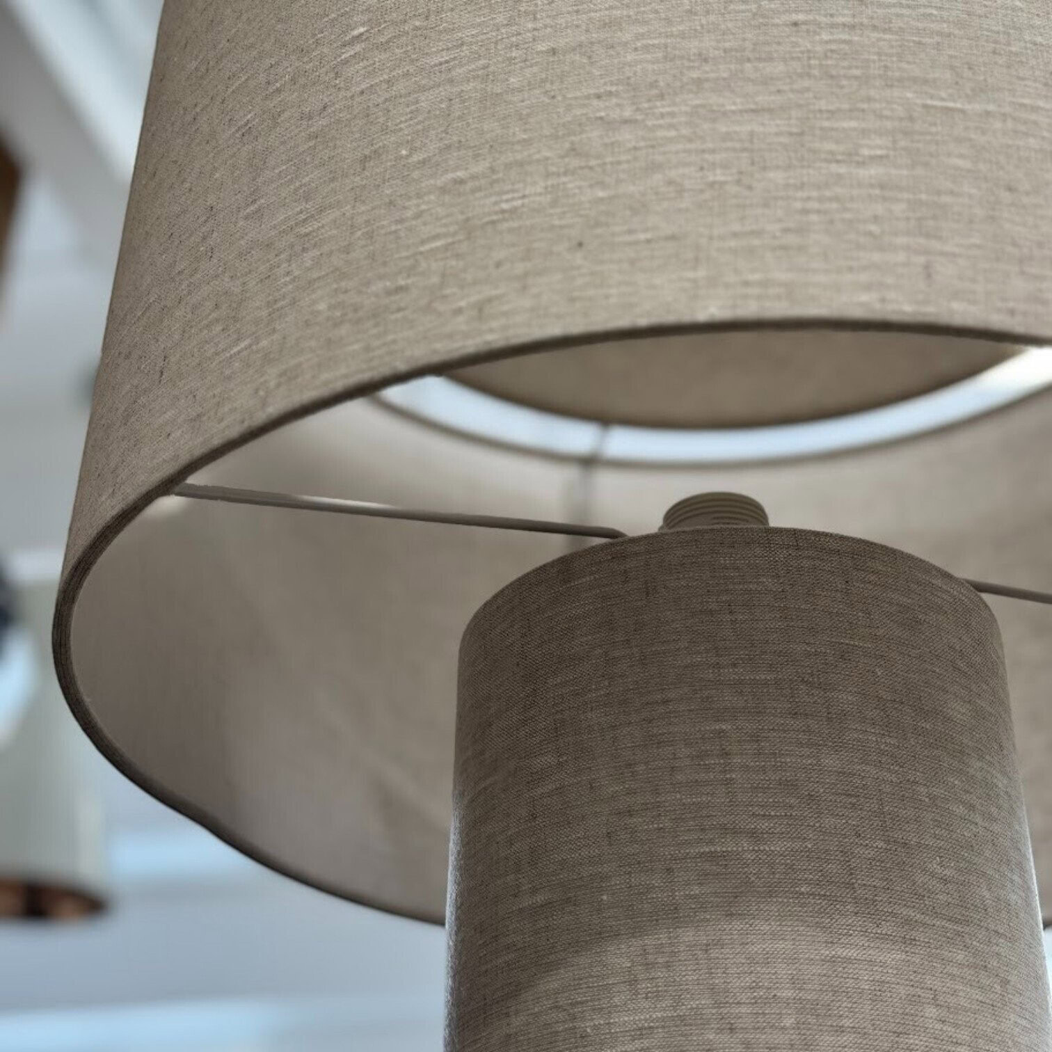 Stāvlampa Ron apvieno dabisku estētiku ar praktisku funkcionalitāti, radot harmonisku akcentu jebkurā interjerā. Tās gaiši bēšais lina abažūrs un saskaņotais pamatnes tonis piešķir siltumu un mājīgumu, savukārt baltais metāla statīvs ar pulverkrāsotu pārklājumu nodrošina vizuālu vieglumu un stabilitāti. Melnais tekstila kabelis piešķir kontrasta akcentu un papildina lampas izsmalcināto dizainu.