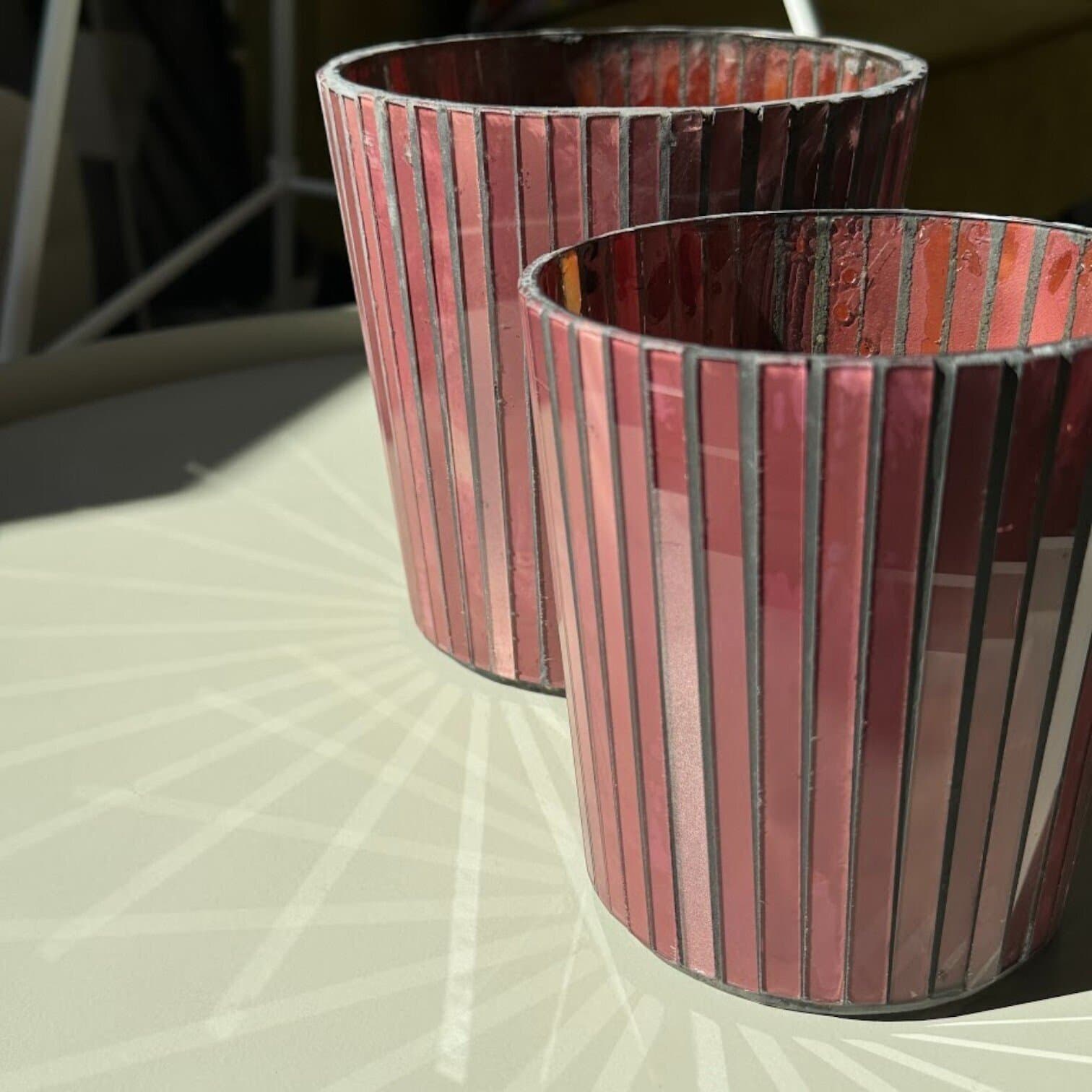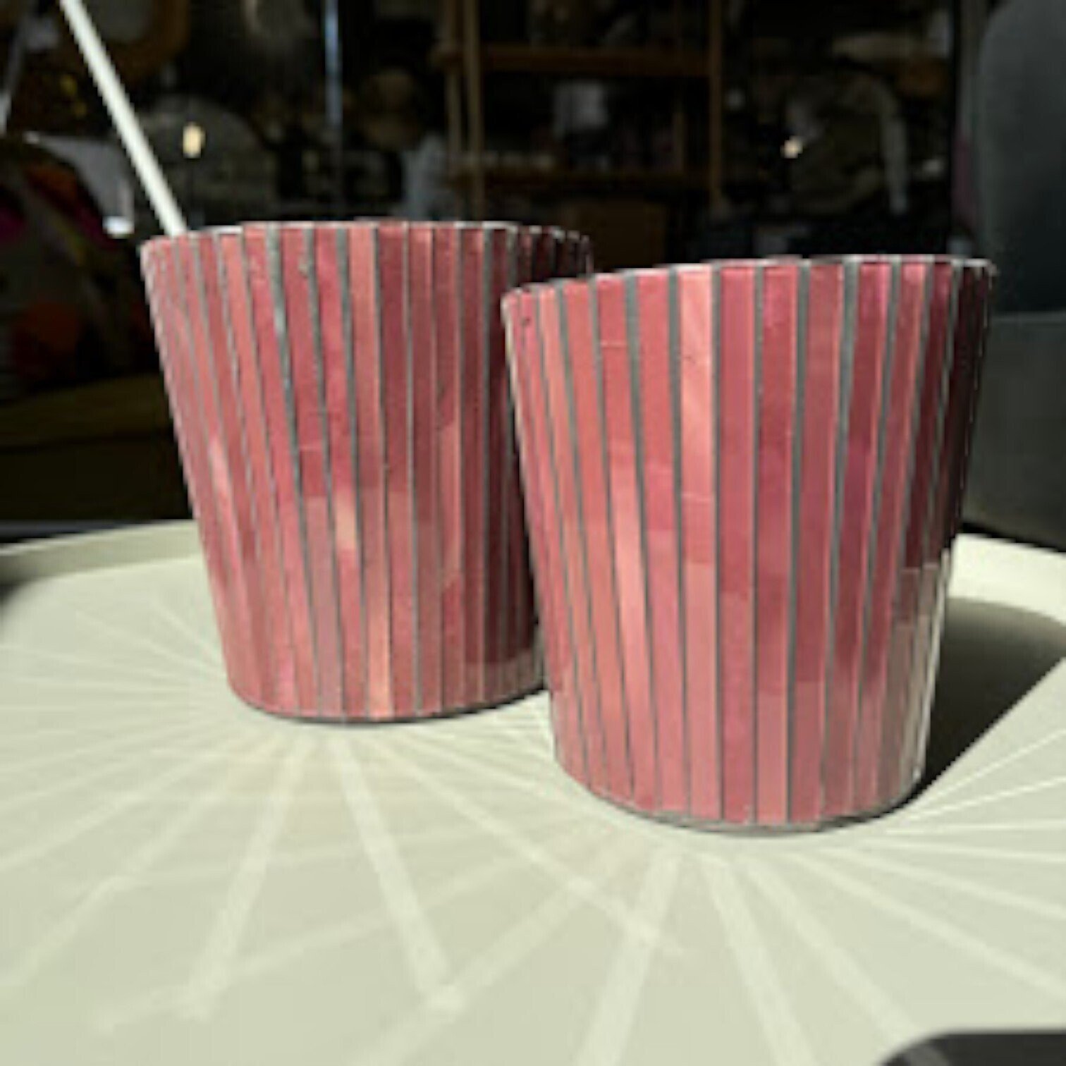 Piešķiriet savai telpai elegances pieskārienu ar šo divu stikla svečturu komplektu, kurā ir dažādi rozā toņi, kas rada unikālu un košu displeju. Šie turētāji ir lieliski piemēroti svecēm, turklāt tie ir arī stilīgi dekoratīvi rotaslietu vai mazo piekariņu glabāšanai, padarot tos par daudzpusīgu papildinājumu jebkurai telpai.