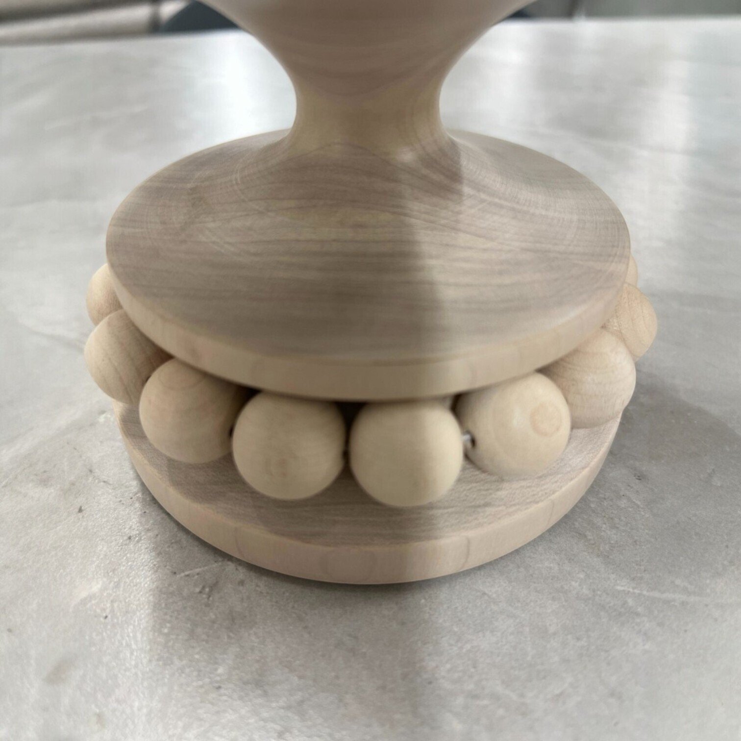 Tam ir viens vainags, kas izgatavots no koka pērlītēm.