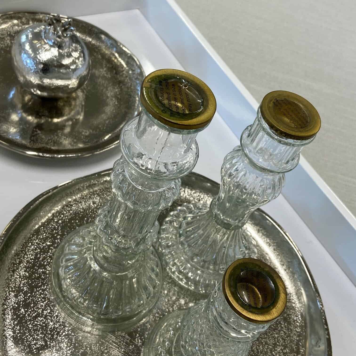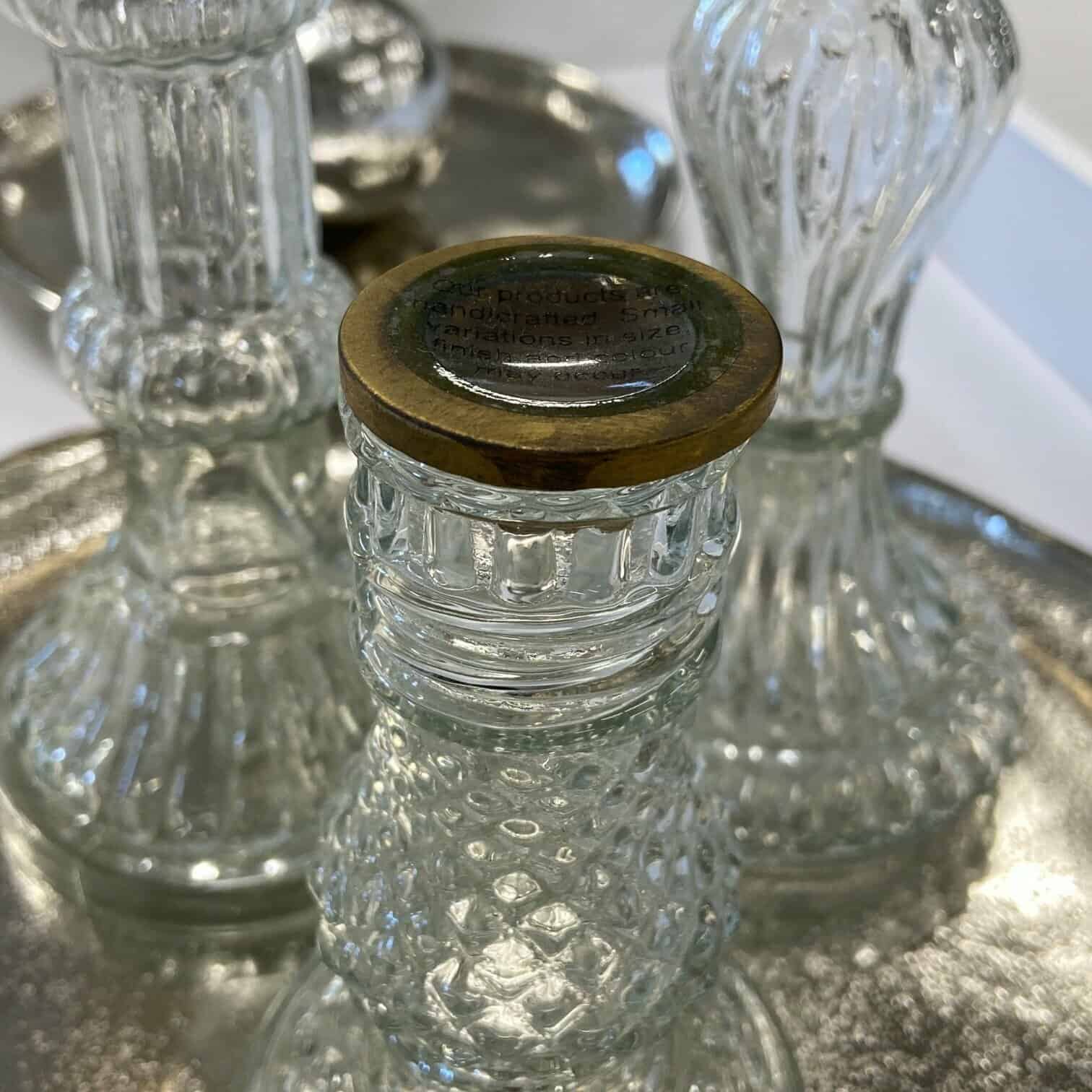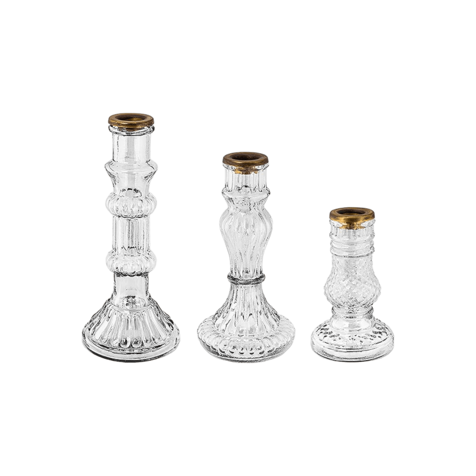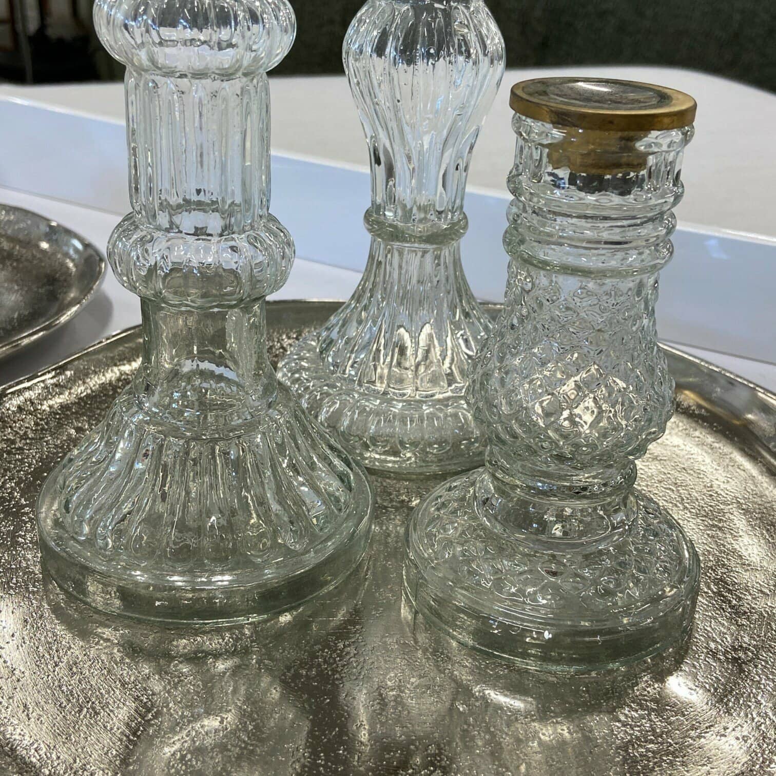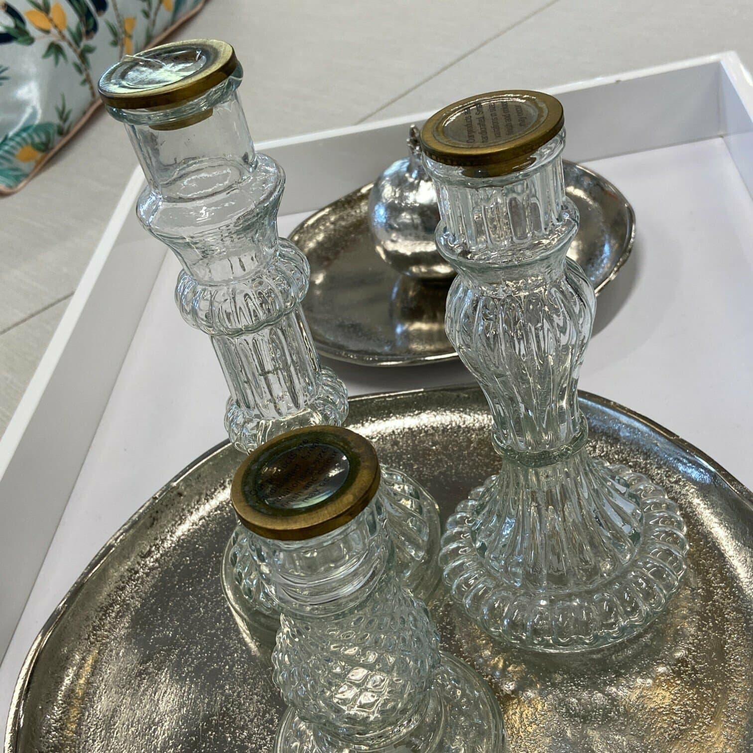 Trīs līmeņu stikla svečturu komplekts. Papildinājums dekorāciju krājumiem. Iededziet sveci šajos svečturos un izbaudiet tās radīto silto mirdzumu un atmosfēru.