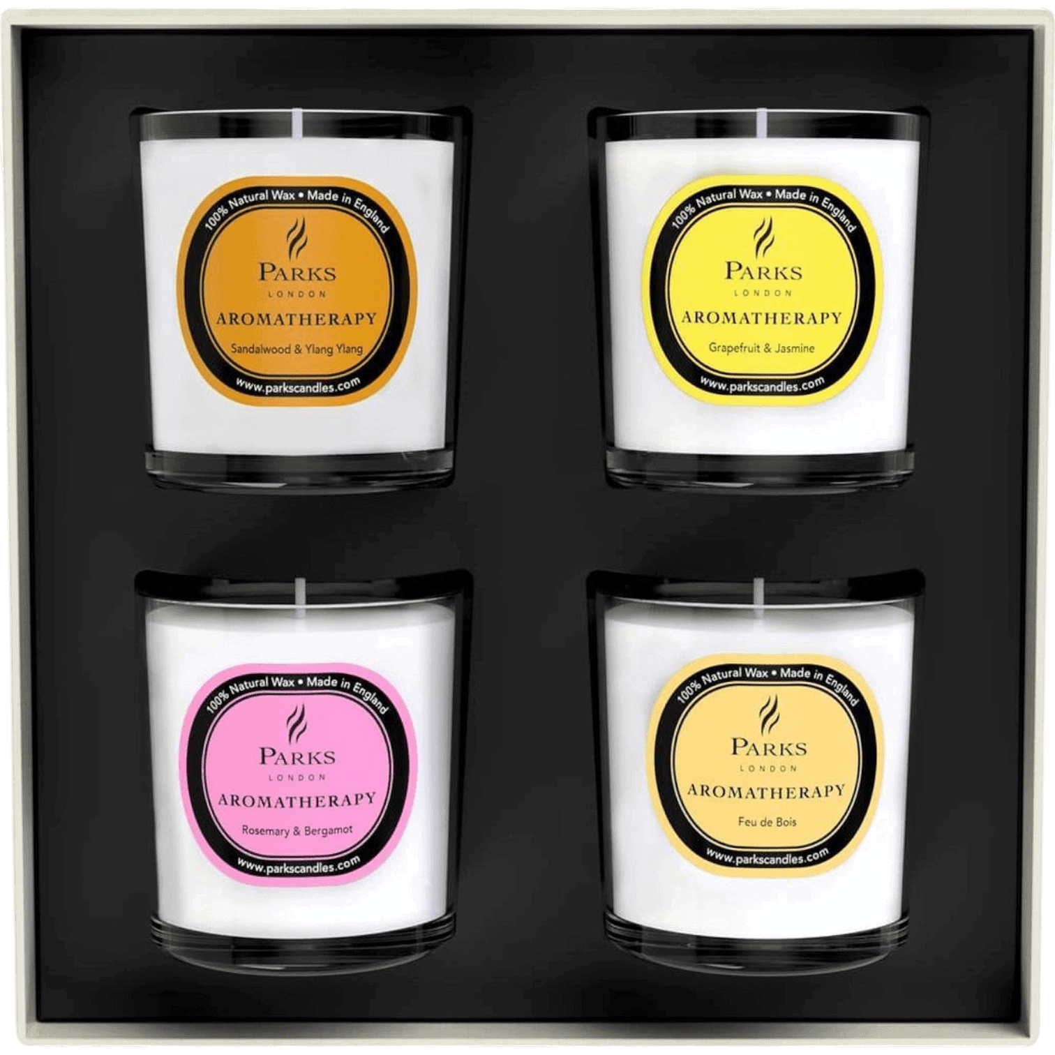 100 % dabīga aromātiskā svece no Parks London. Šajā augstas kvalitātes sveču komplektā ietilpst rūpīgi atlasītas izsmalcinātas aromterapijas smaržas (4×300ml): vaniļa, apelsīns, ciedrkoks un krustnagliņas, jasmīns, pačūlija un citrons, kā arī laims, baziliks un mandarīns. Sveces ir iepakotas greznā dāvanu kastē, padarot šo komplektu par lielisku izvēli gan sev, gan dāvanai.