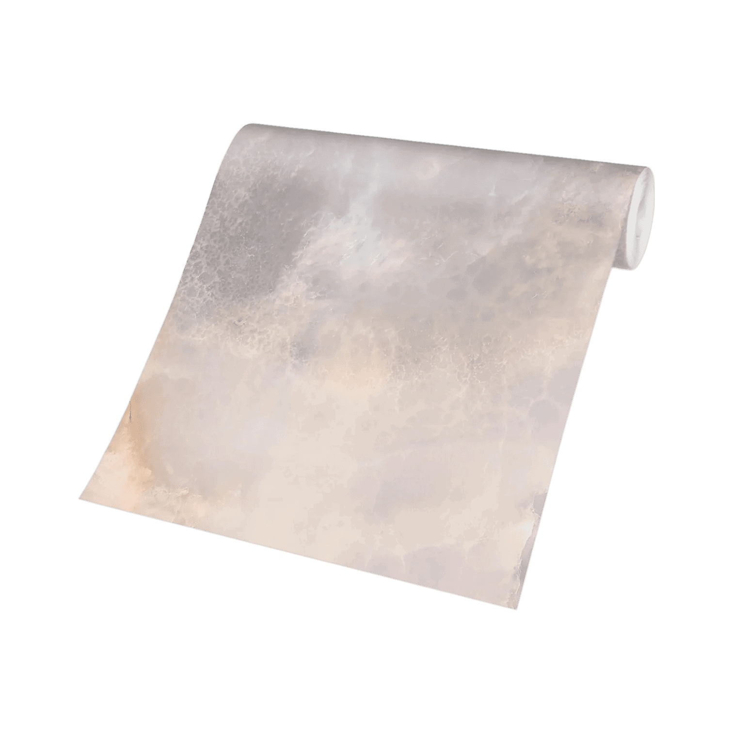 Izsmalcināta un mierpilna sienas apdare ar dabīgā oniksa marmora iedvesmotu dizainu. Tapetes zīmējums atgādina gaisā plūstošas minerālu struktūras ar viegliem pelēkiem, krēmīgiem un zeltainiem toņiem, kas rada telpā elegantu un harmonisku noskaņu.