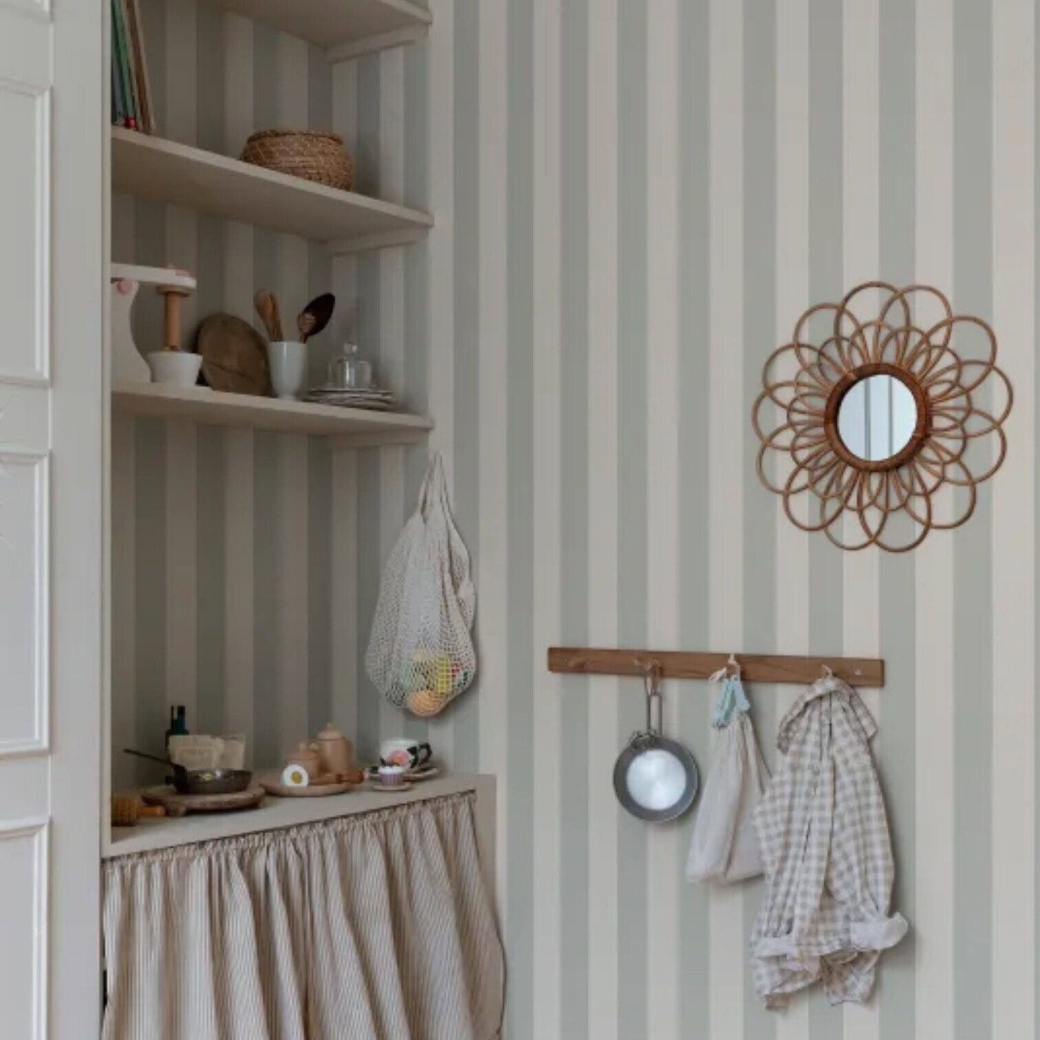 Klasisks svītru raksta tapetes dizains ar mūsdienīgu noskaņu, kas izskatās lieliski.