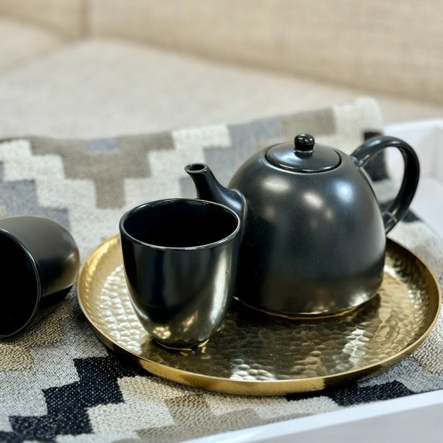 Šis elegantais vtwonen tējas komplekts piešķirs jūsu tējas baudīšanai īpašu šarmu. Melnais matētais tonis piešķir modernu un greznu akcentu gan ikdienas tējas rituāliem, gan svinīgām reizēm. Izgatavots no kvalitatīva porcelāna, komplekts ir izturīgs un piemērots ilgstošai lietošanai. Svarīgi: nav piemērots trauku mazgājamajai mašīnai.
