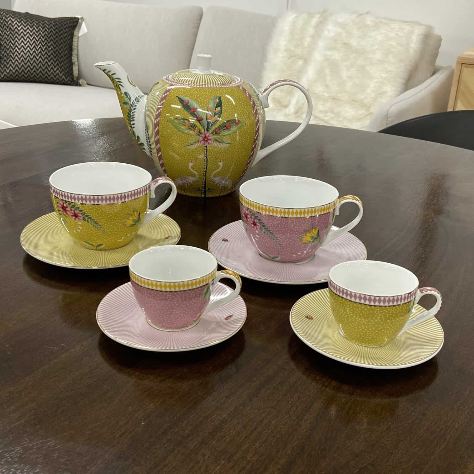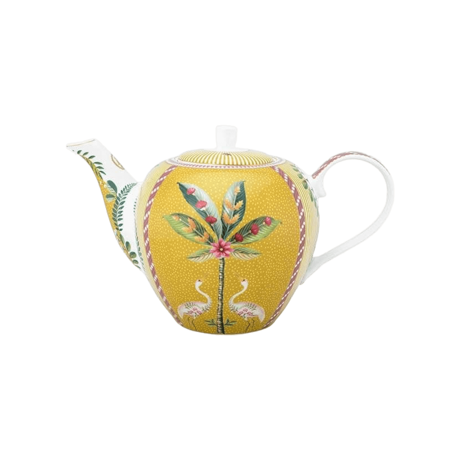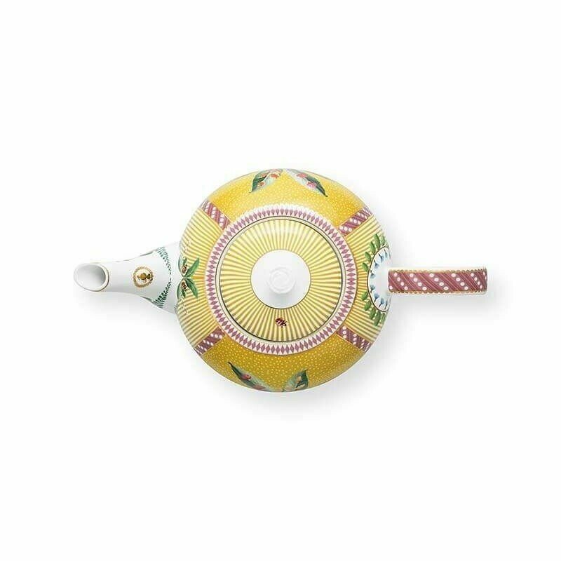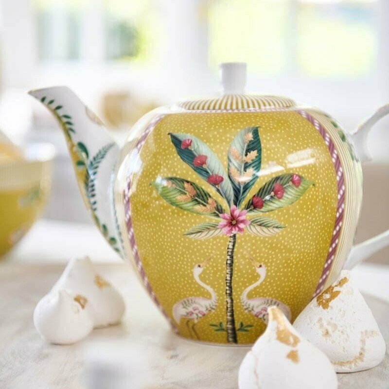 Bagātiniet savu porcelāna kolekciju ar šo lielo, dzelteno La Majorelle tējkannu. Tējkannai ir dzeltens fons, un to rotā jautrs La Majorelle dizains. Šis dizains sastāv no eksotiskas palmas, ko ieskauj divi dekoratīvi gārņi. Skaistās dzeltenās detaļas piešķir tējkannai dzīvespriecīgu pieskārienu. La Majorelle porcelāns spīdēs jūsu porcelāna skapī un uz jūsu galda!
