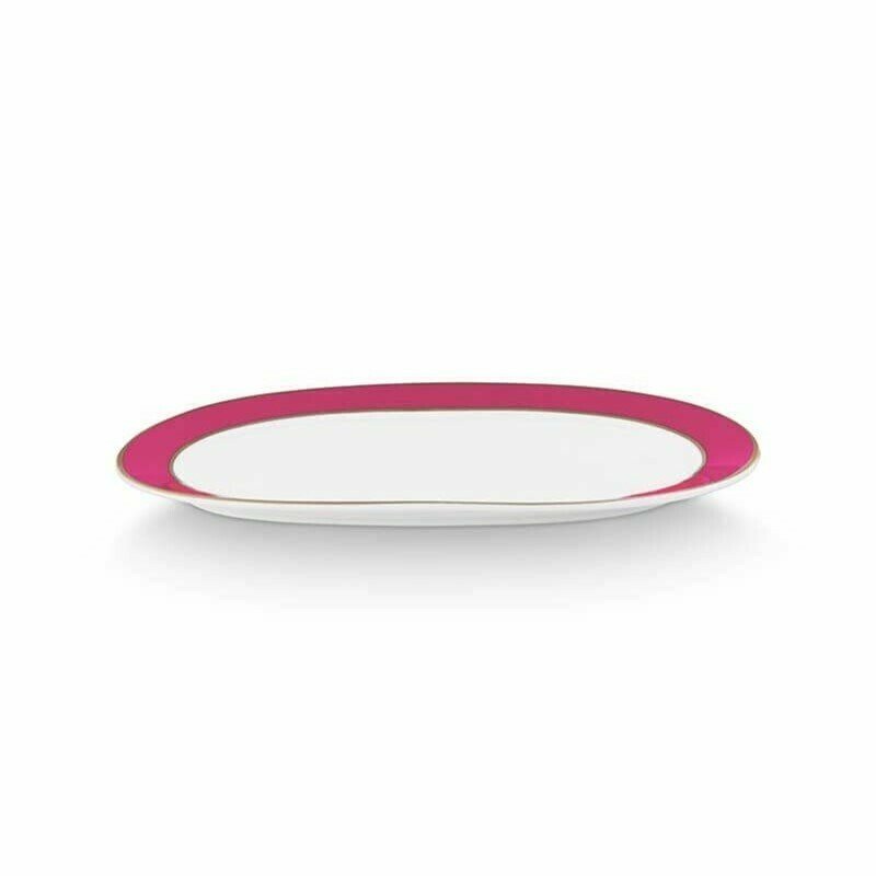 Šis rozā servēšanas trauks ar baltu centru un zelta detaļām ir ideāli piemērots kombinācijai ar citiem šīs kolekcijas traukiem vai Royal Stripes kolekciju. Augstas kvalitātes plāns Bone China porcelāna. Lai iegūtu vairāk iedvesmas, skatiet visu Pip Chique kolekciju
