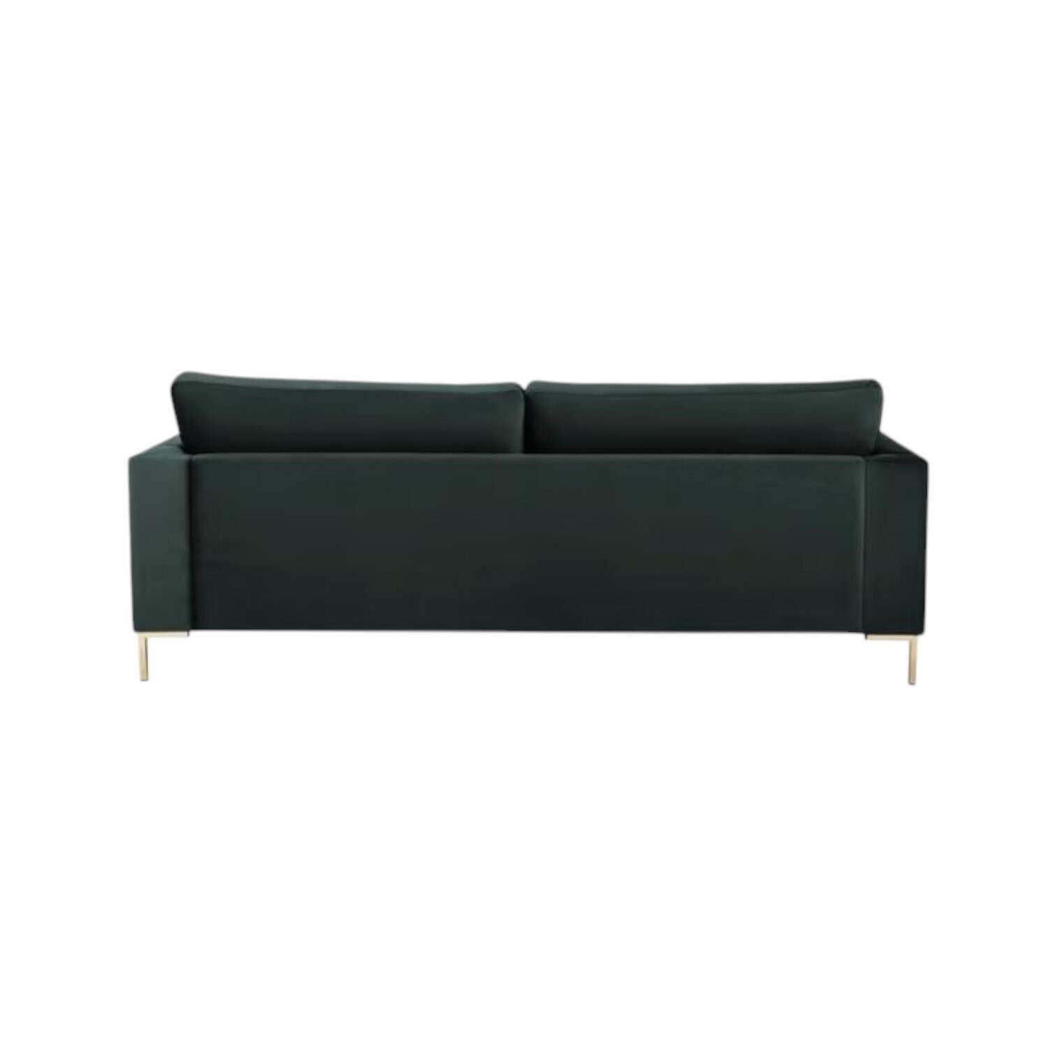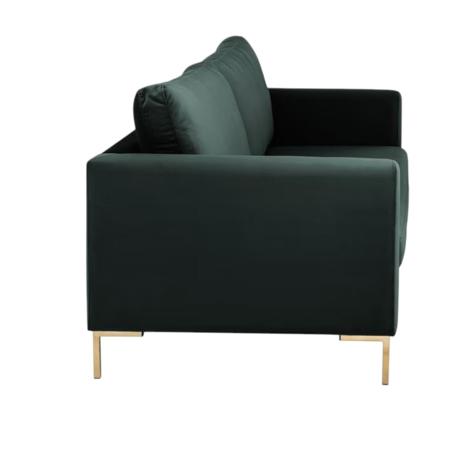 Dizains: Bagātīgs zaļā samta audums piešķir telpai siltumu un greznumu, savukārt smalkās zelta kājas piešķir vieglumu un modernu akcentu.