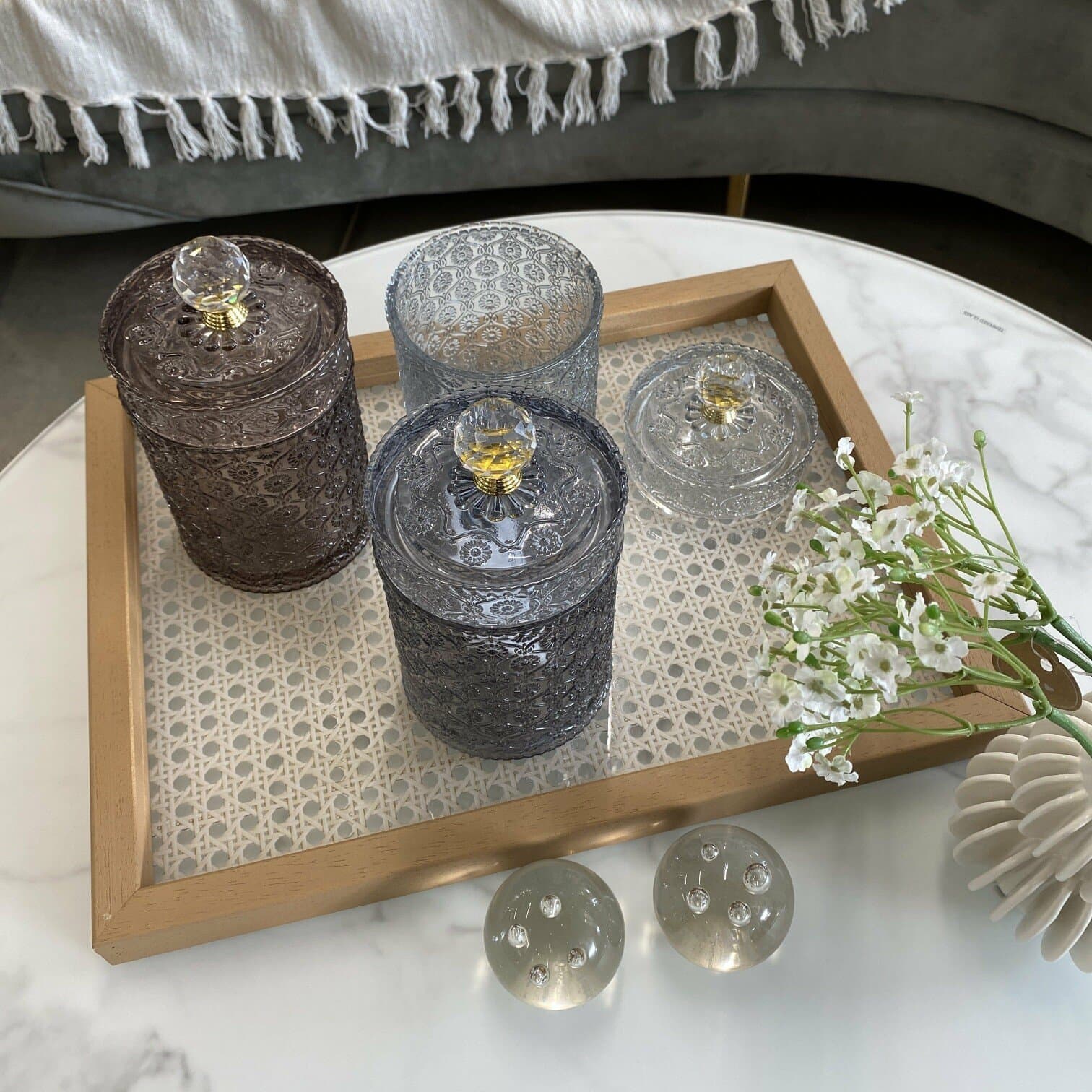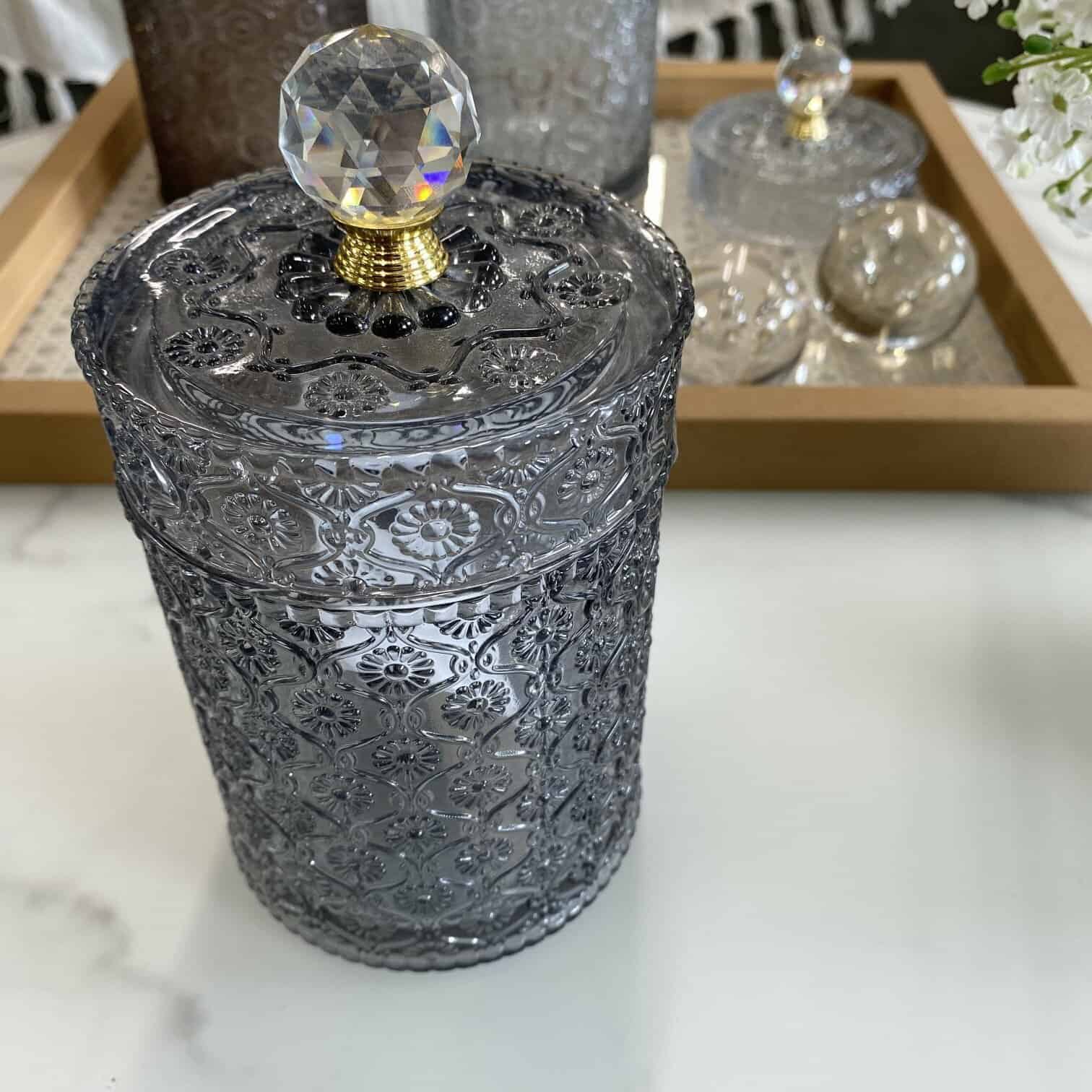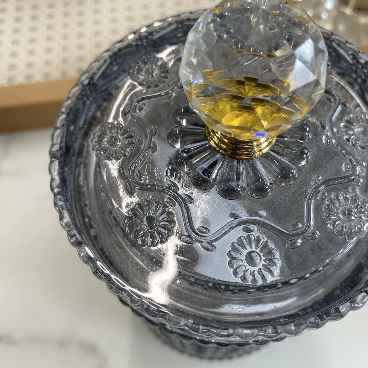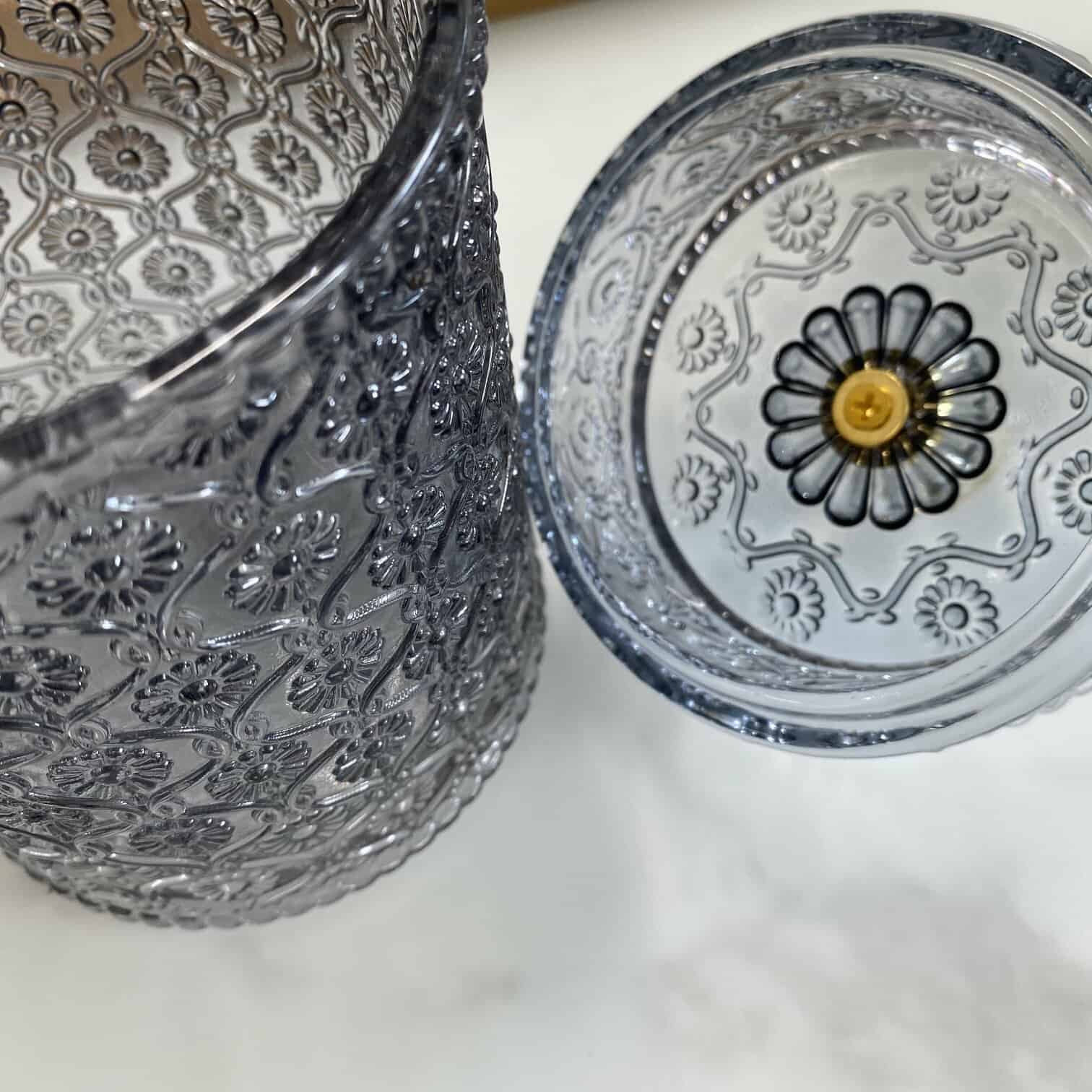 Dekoratīvs stikla trauks ar vāciņu, tumši zilā krāsā