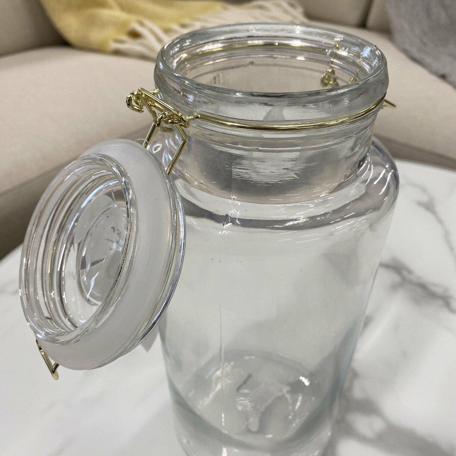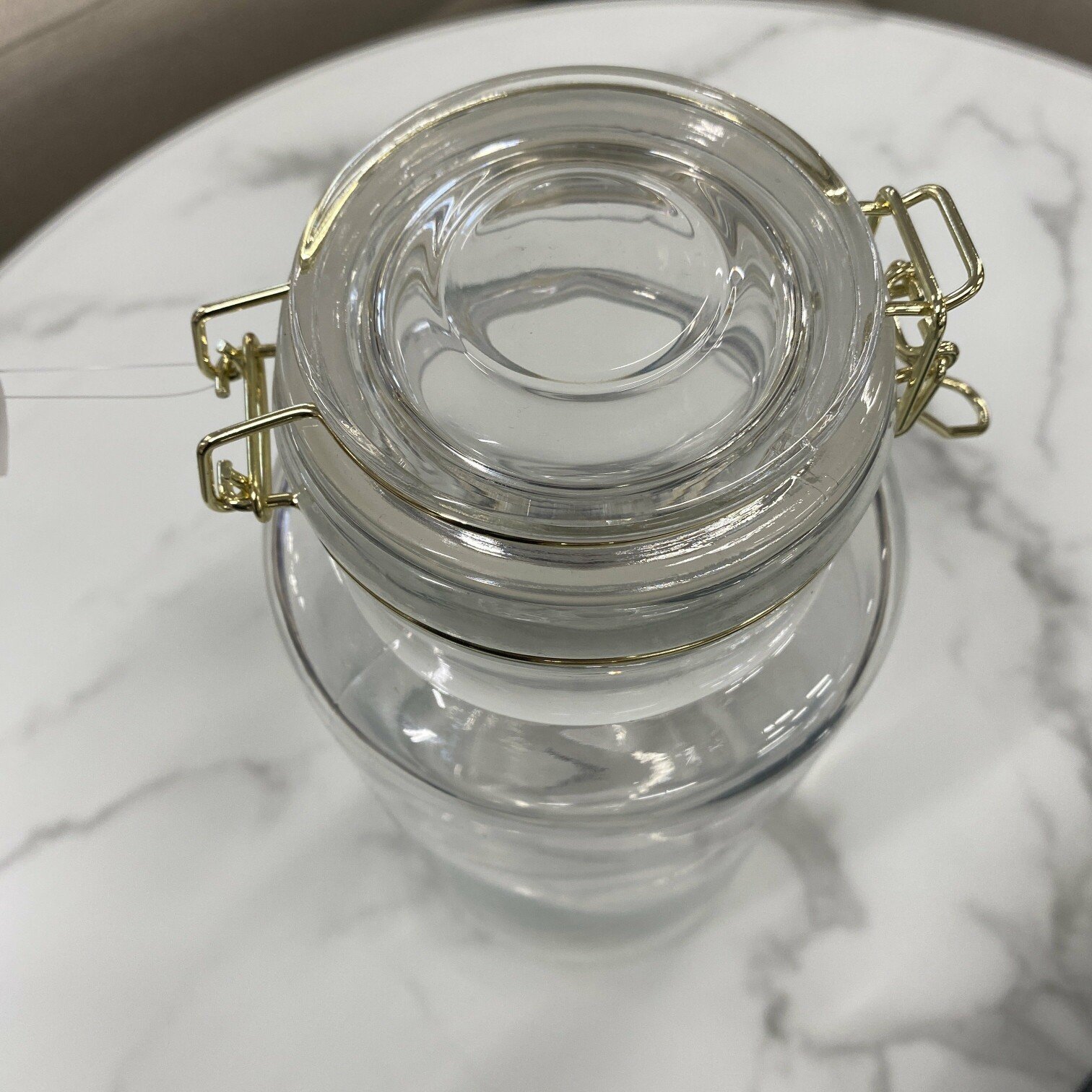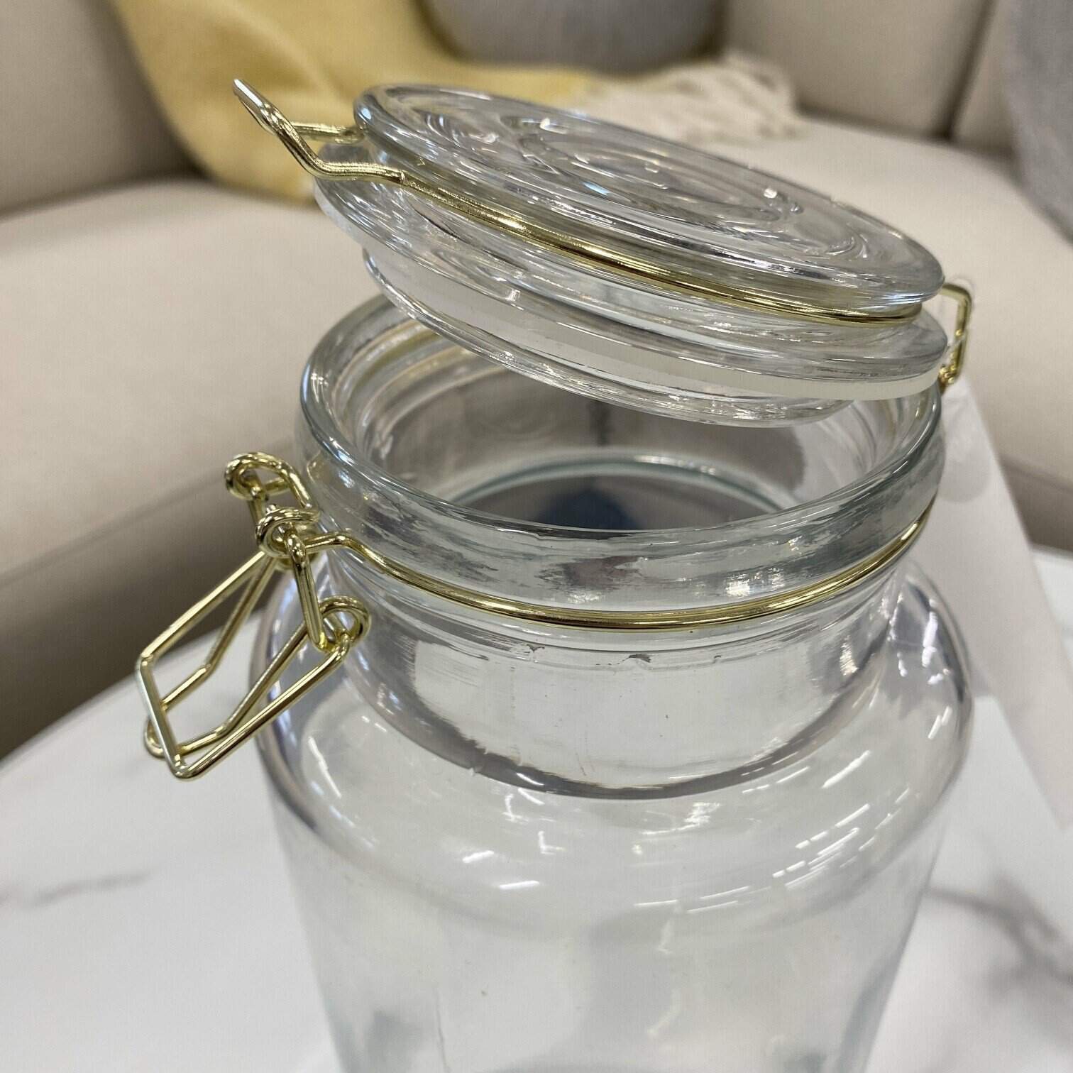 Uzglabāšanas trauks – burka, ar zelta krāsas metāla aistaisāmo un silikonu vāka iekšpusē, lai saglabātu pārtikas svaigumu un nepieļautu gaisa, mitruma caurlaidību.