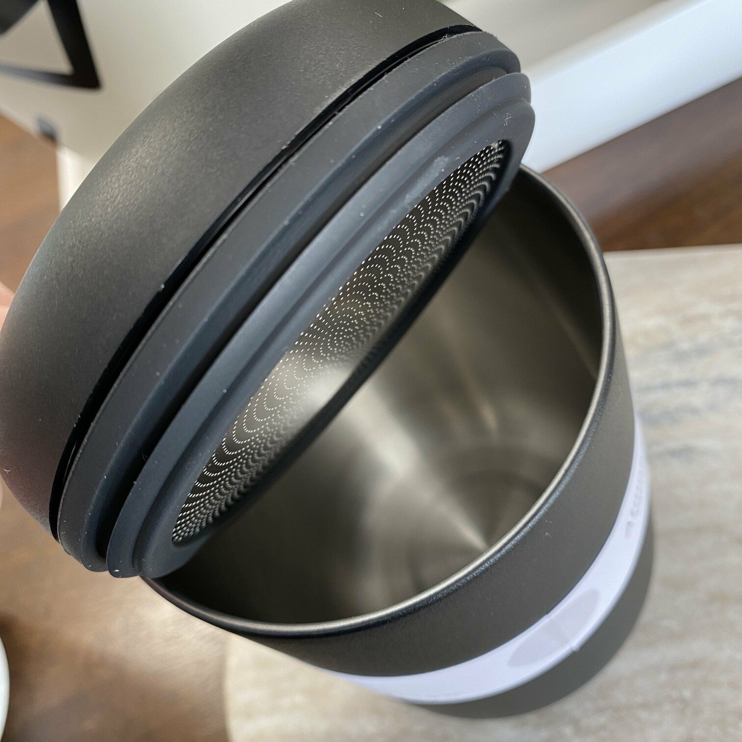 Groza konteinera vāku šurpu turpu līdz pamanāms zaļais indikators uz vāka, lai atbrīvotos no gaisa konteinera iekšpusē;