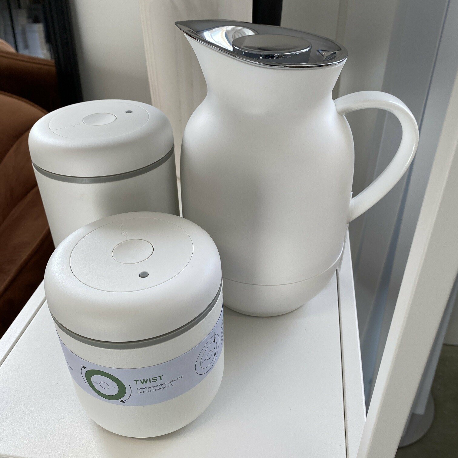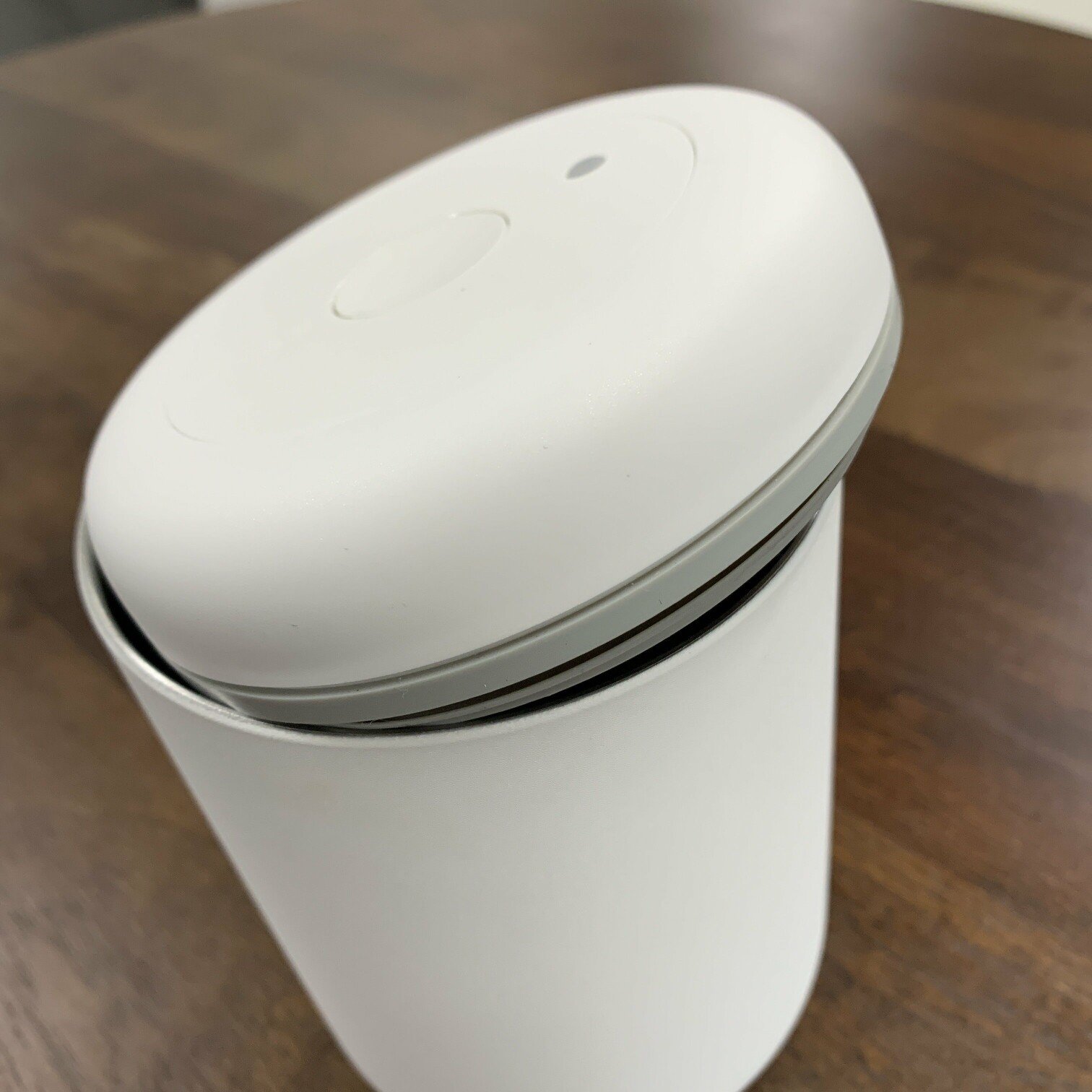 Vakuuma uzglabāšanas konteiners baltā krāsā. Saglabā sausās pārtikas svaigumu.