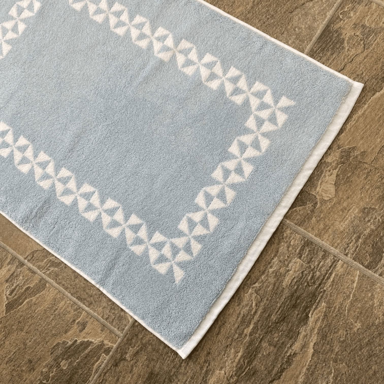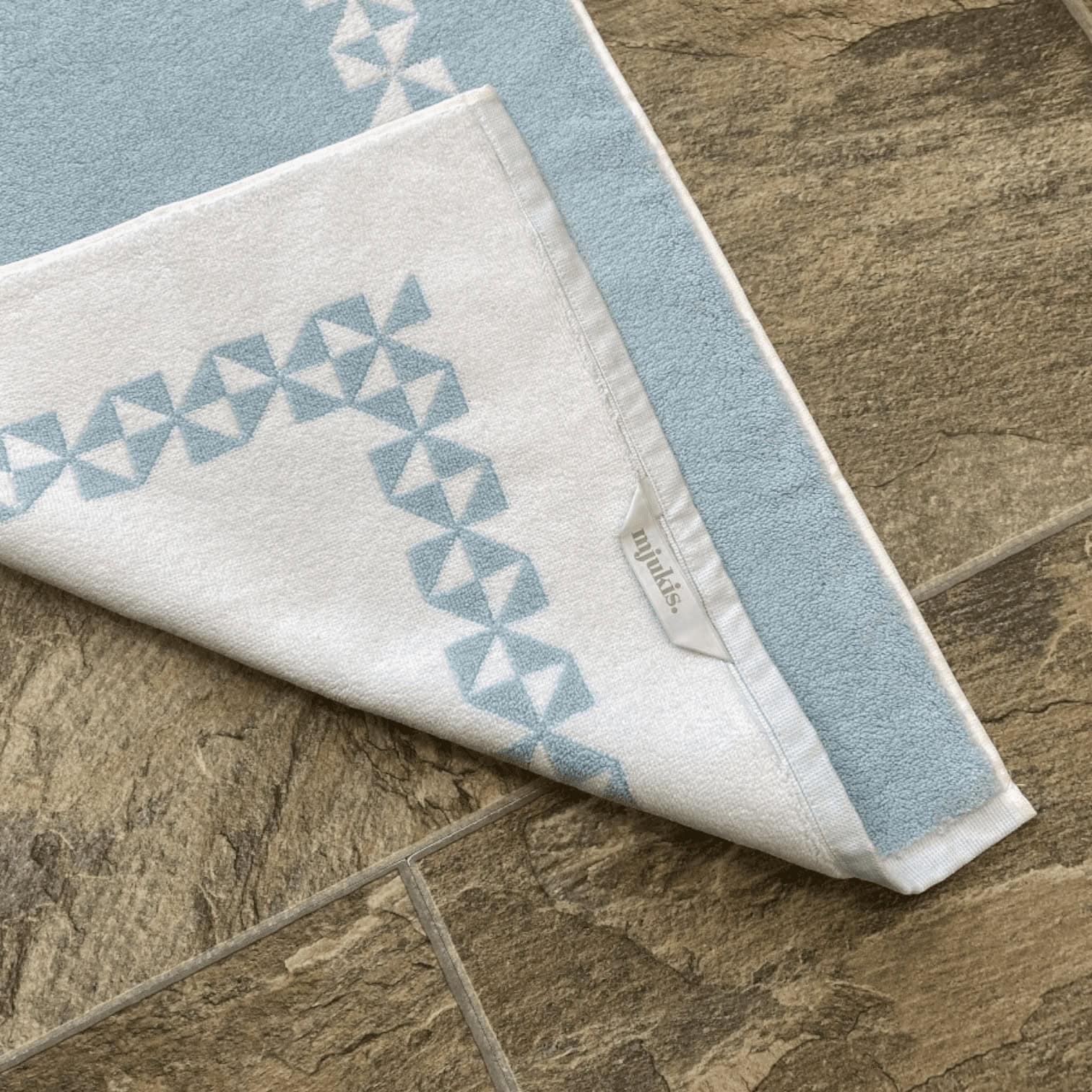 Portugālē ražots vannas istabas tekstils. Šis divpusējais vannas istabas paklājs zilā un baltā krāsā iederēsies jebkurā vannas istabā, bet tajā pašā laikā būs kā skaists akcents.