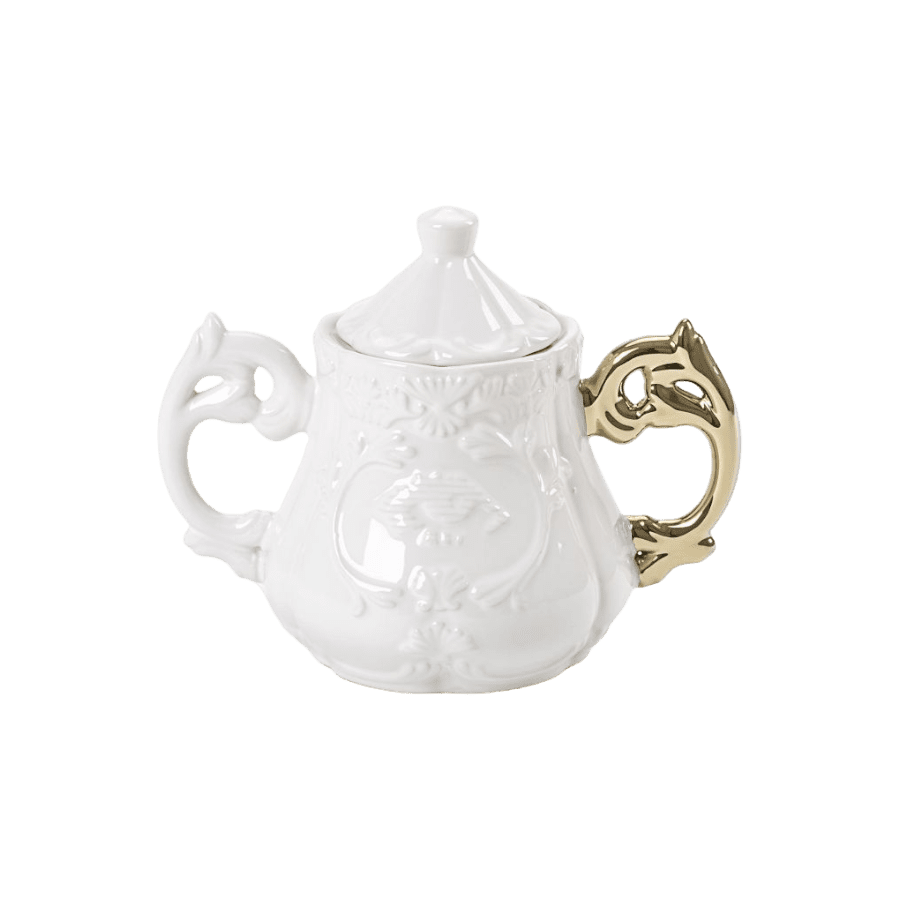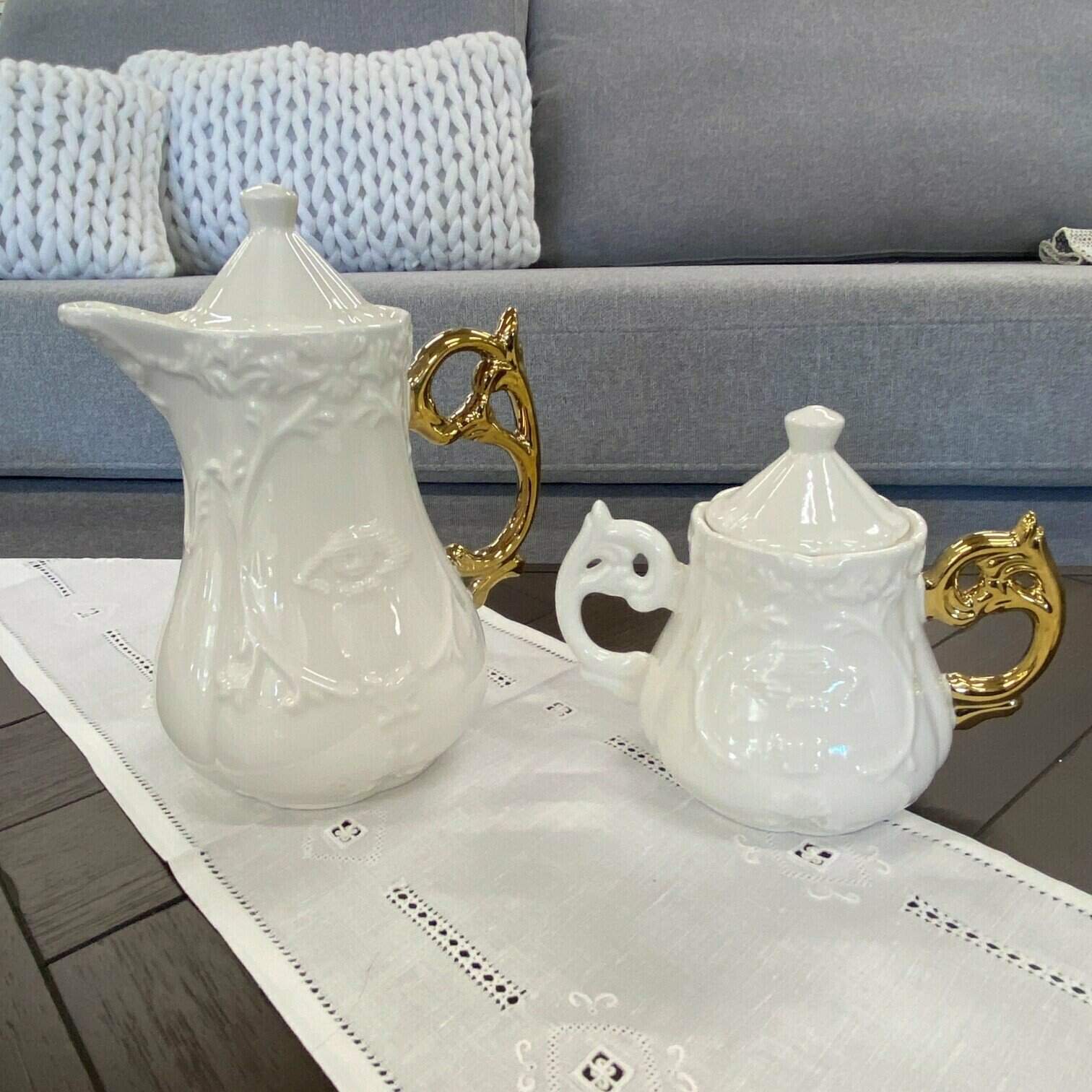 Krūzes, tējas un kafijas komplekti, kas ir baroka stila iedvesmoti.