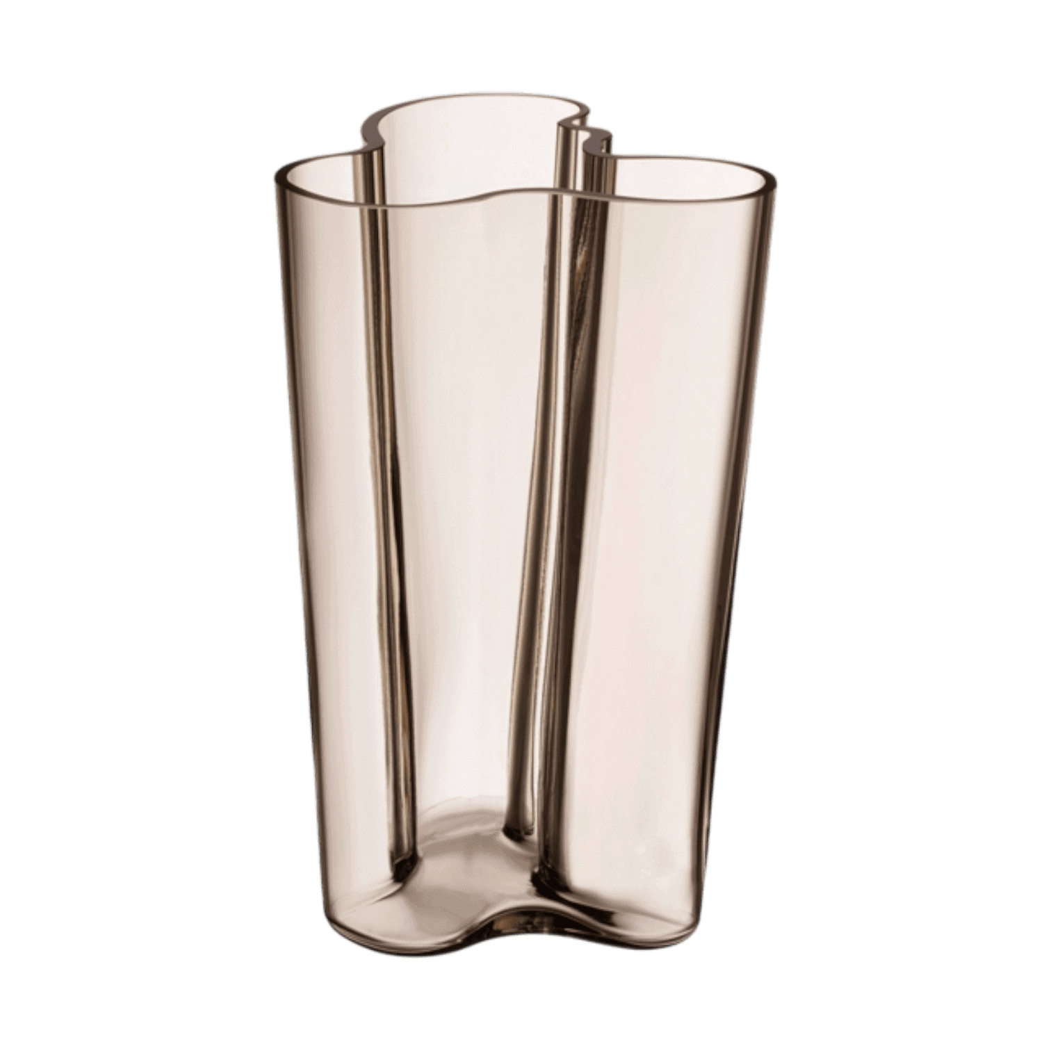 Katrs unikālais vāze tiek izpūsta ar muti, pēc tam rokām apgriezta un vairākkārt pulēta Iittala stikla fabrikā. Leģendārā Aalto vāze piešķir telpai izteiksmīgu akcentu — tās vienkāršais dizains izceļ ziedu skaistumu, bet maigais lina tonis piešķir interjeram dabiskuma pieskārienu.
