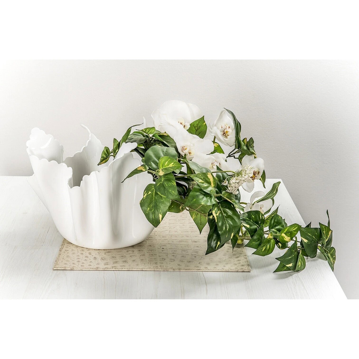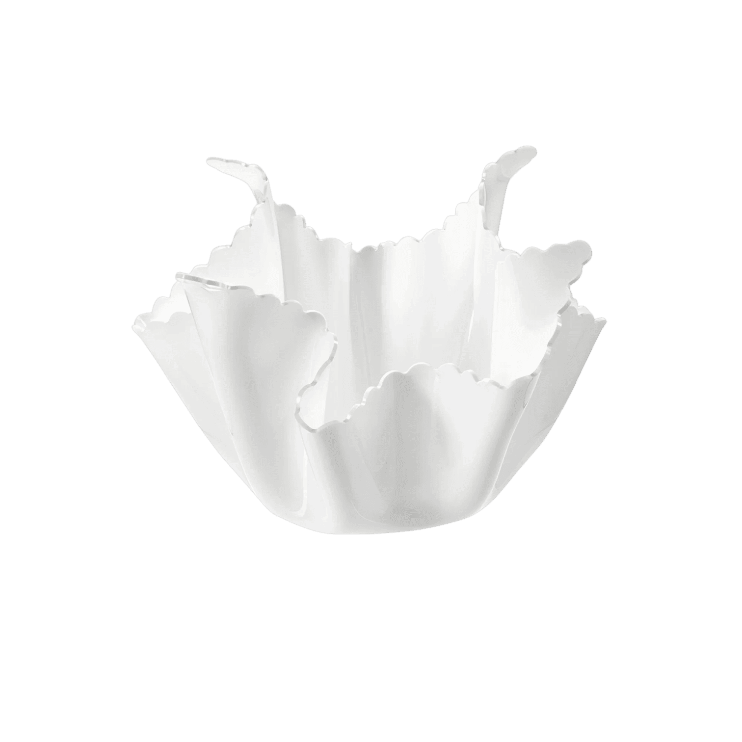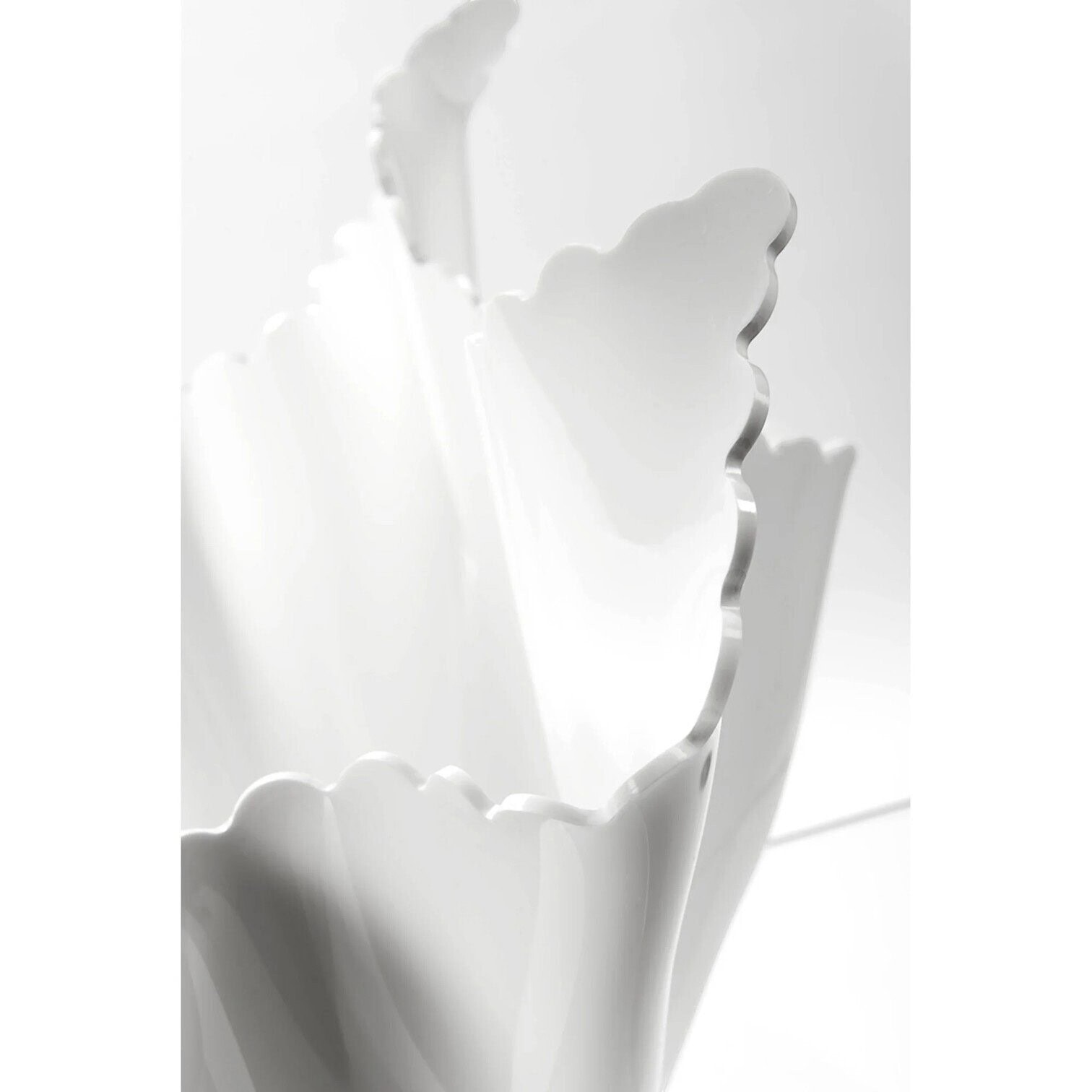 Katra Drappeggi vāze ir unikāls priekšmets un mūsdienu mākslas darbs. Tā tiek radīta ar rokām, drapējot 100% tīra pirmapstrādes PMMA polimēra (plexiglass) loksni intensīvi baltā krāsā, tādējādi katra vāze ir neatkārtojama.