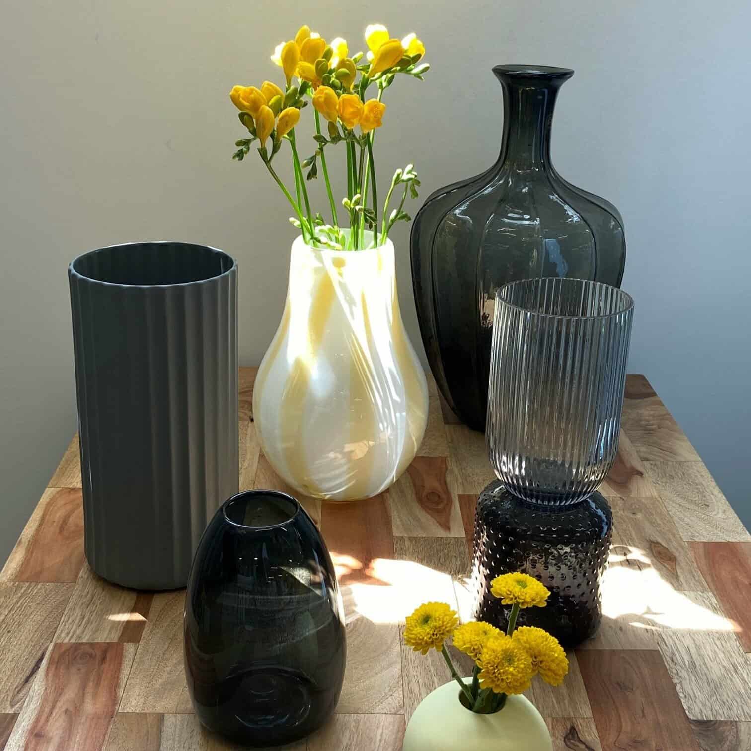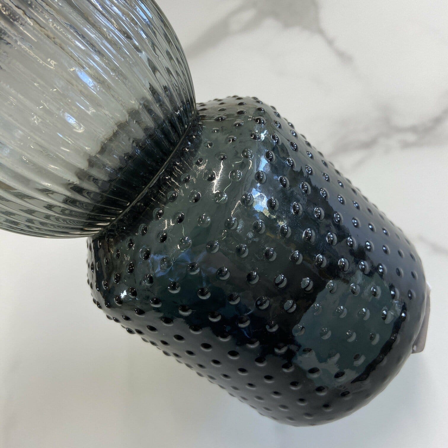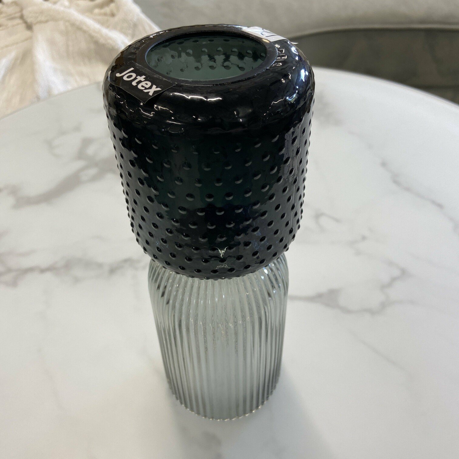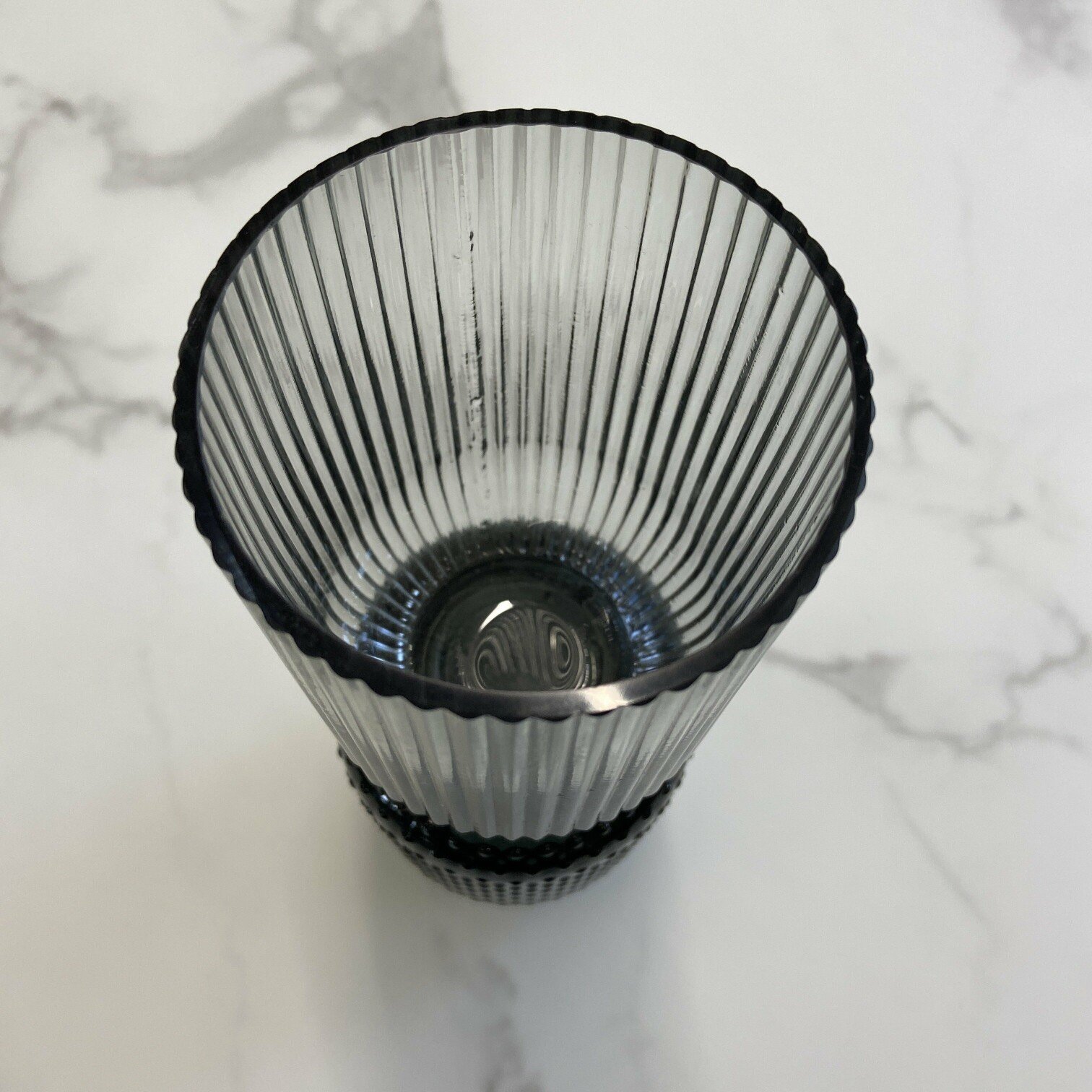 Stikla vāze ar rievotu struktūru