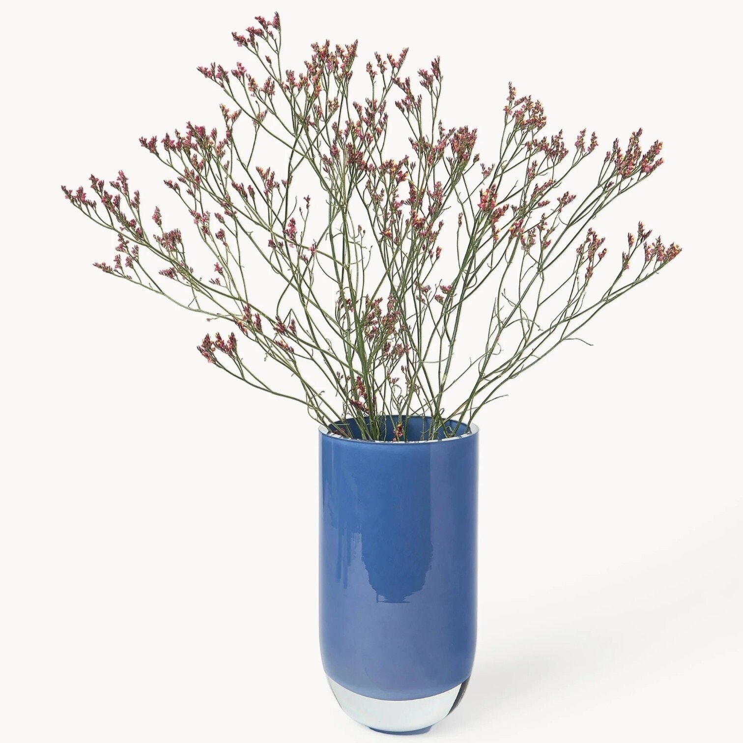 Šī ir eleganta zilā vāze ar gludu, spīdīgu virsmu un sudrabotu pamatni, kas piešķir tai viegluma un modernisma sajūtu. Cilindriskā forma padara vāzi par universālu interjera akcentu – tā lieliski iederēsies gan modernā, gan klasiskā interjerā. Vāze ir piemērota gan svaigiem, gan mākslīgiem ziediem, bet tikpat labi izskatās arī kā patstāvīgs dekoratīvs elements uz galda, palodzes vai plaukta.