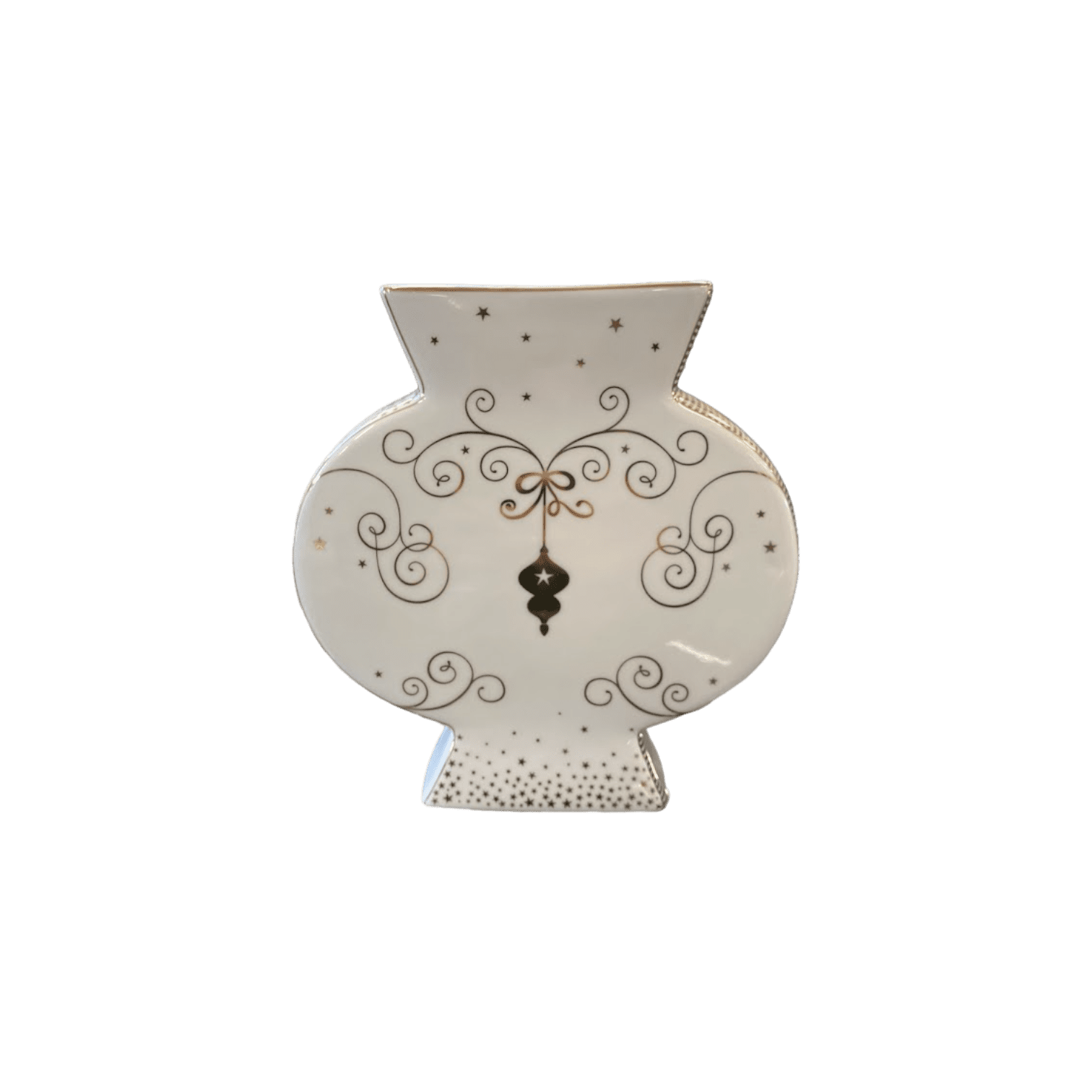 Apaļas formas vāze ir balta, un tā ir dekorēta ar zelta detaļām – Ziemassvētku rotājumi un zvaigznes. Kombinējiet un saskaņojiet ar pārējo Royal Winter kolekciju, lai radītu svētku atmosfēru uz pusdienu galda vai jūsu mājās