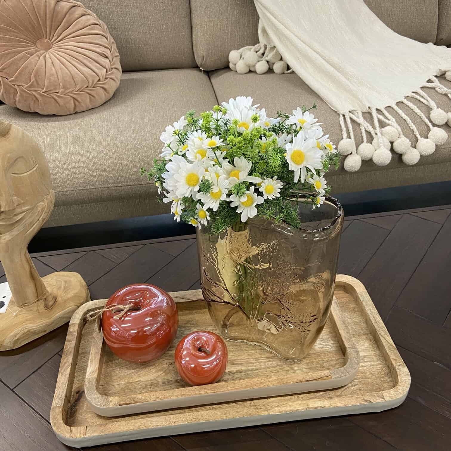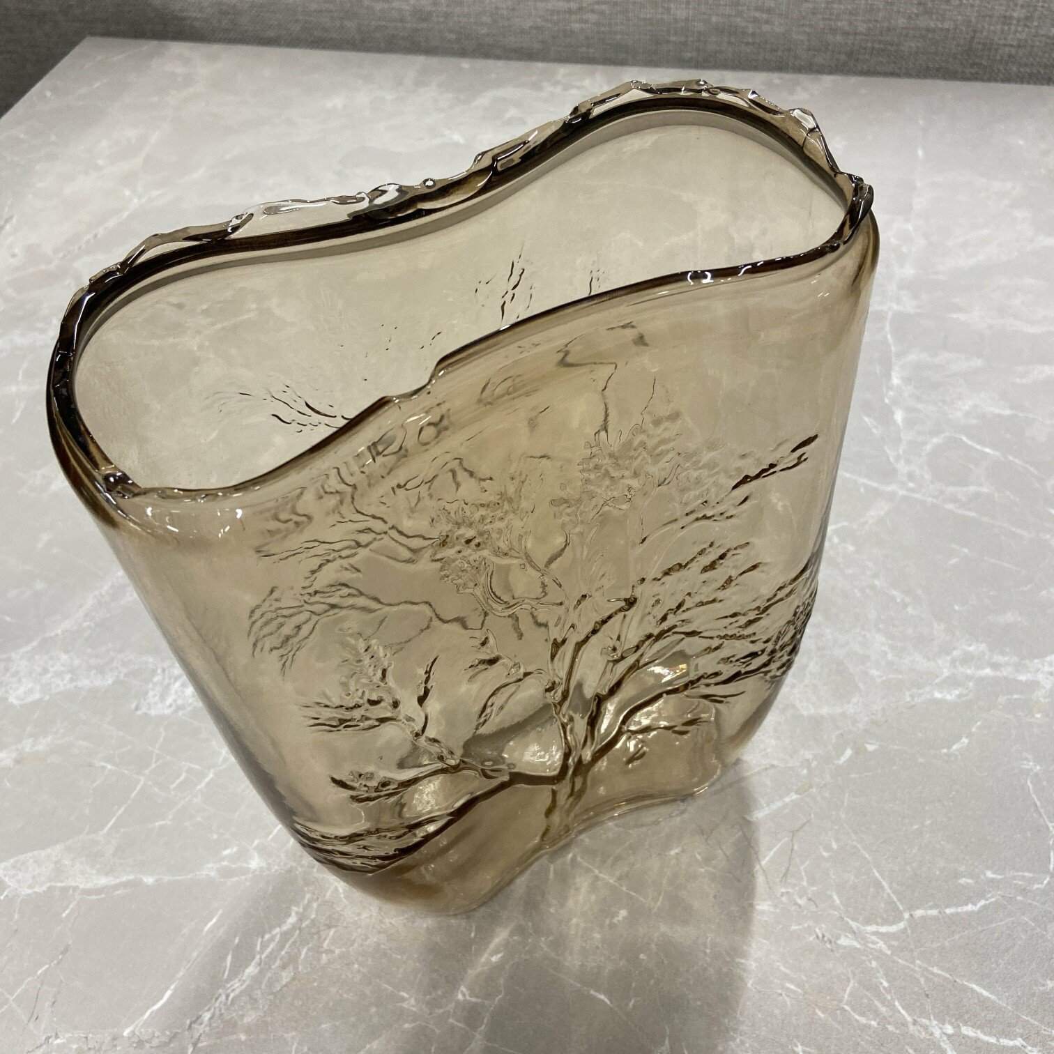 Brūna stikla vāze. Katrs koka zars ir kā simbols jaunam sākumam, jaunām zināšanām, katrs zieds ir kā mirklis laimes, kas ir jānotver tieši šajā brīdi.