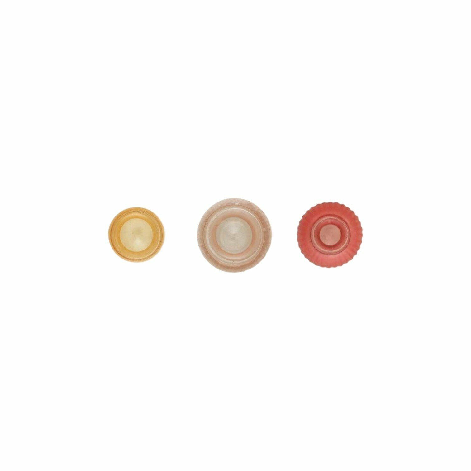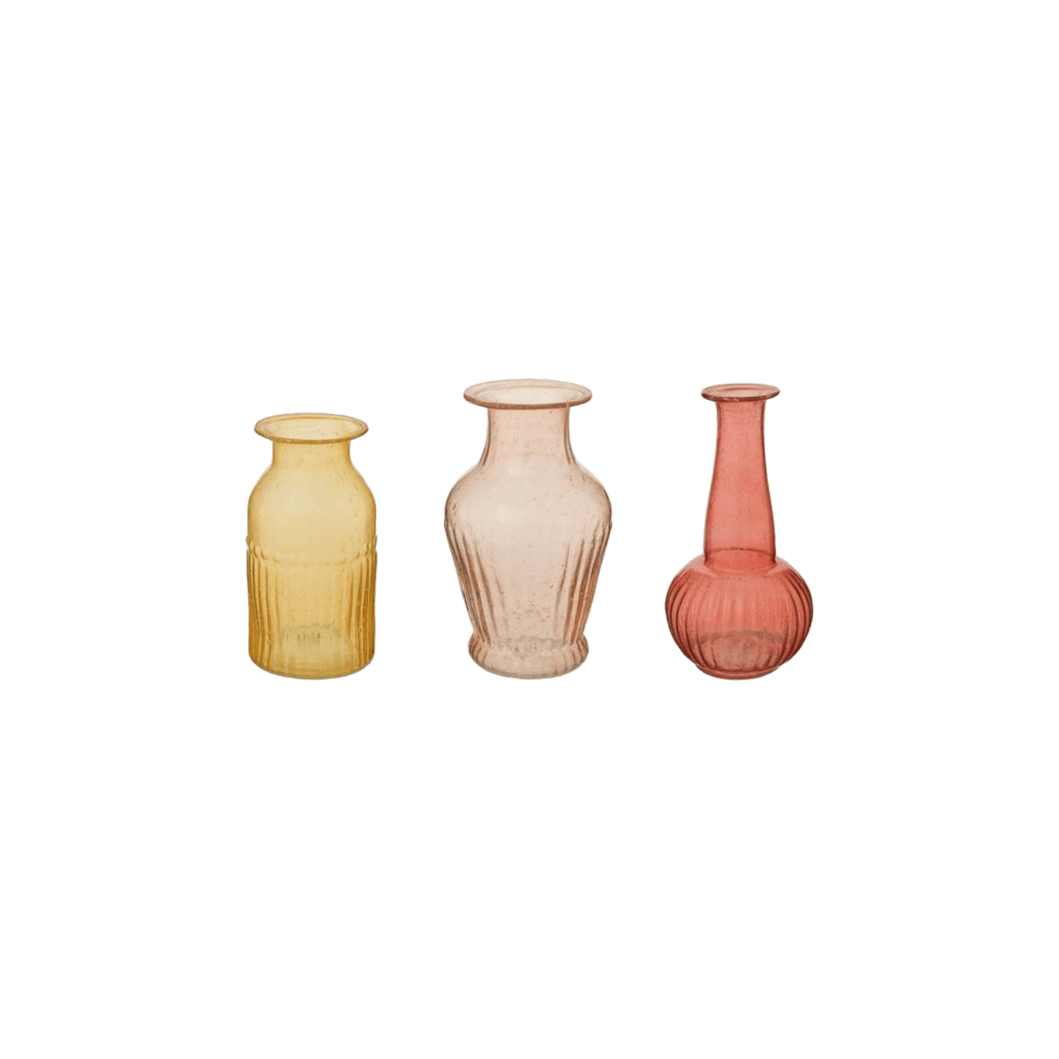Piešķiriet savam interjeram smalku krāsu akcentu ar šo trīs rozā stikla vāžu komplektu. Šīs vāzes ļauj jebkuram ziedam izskatīties fantastiski