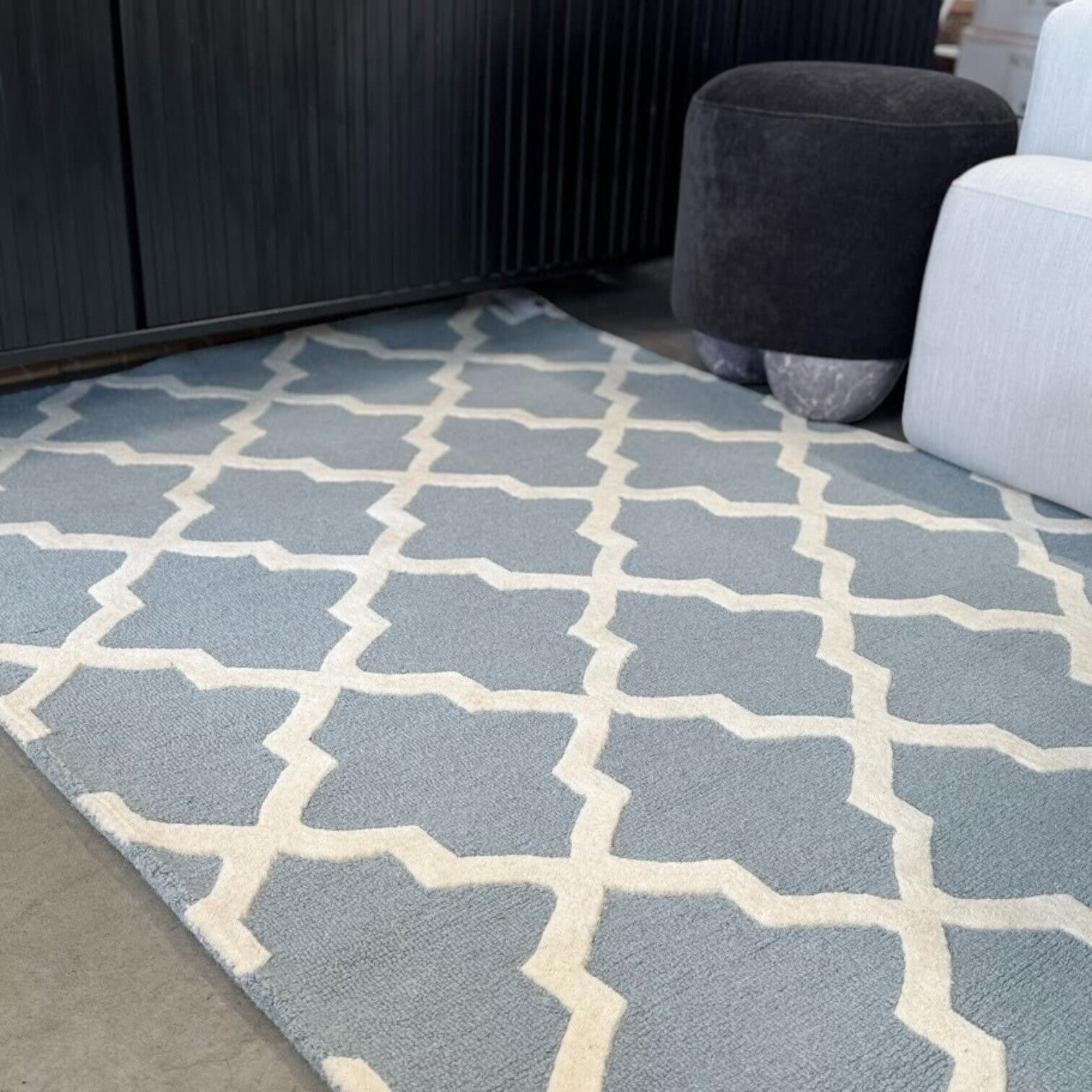 Dizains ar ģeometrisku rakstu piešķir modernu un stilīgu akcentu, kas lieliski iederas gan viesistabā, gan guļamistabā vai darba telpā. Vilna nodrošina dabisku izturību un siltuma sajūtu, bet kokvilnas pamatne palīdz saglabāt formu un stabilitāti.