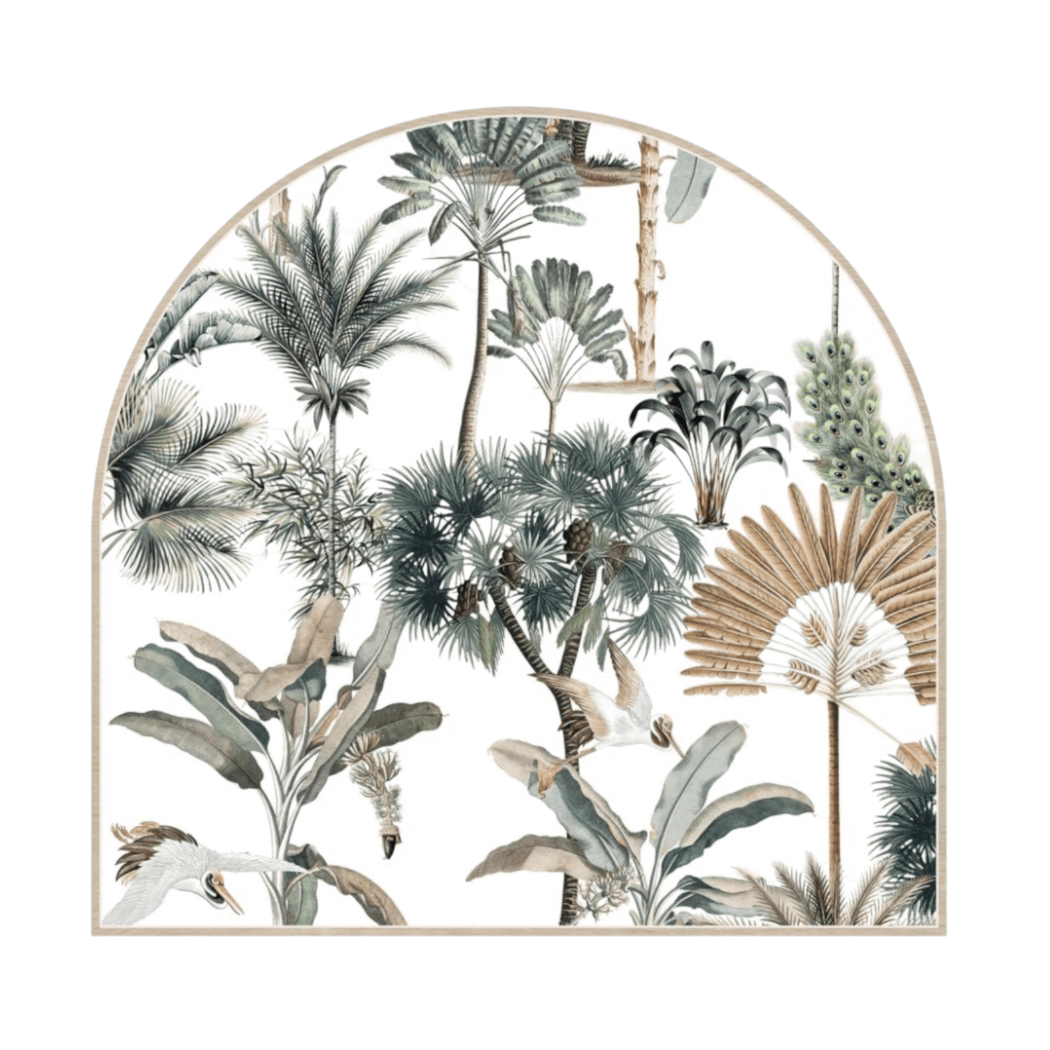 Šis ir unikāls un stilīgs vinila galvgalis sienai, kas apvieno māksliniecisku estētiku ar praktiskumu. Ar pusapaļas formas dizainu un tropisku augu, palmu un putnu motīviem, tas ienes dabas pieskārienu jebkurā guļamistabā.