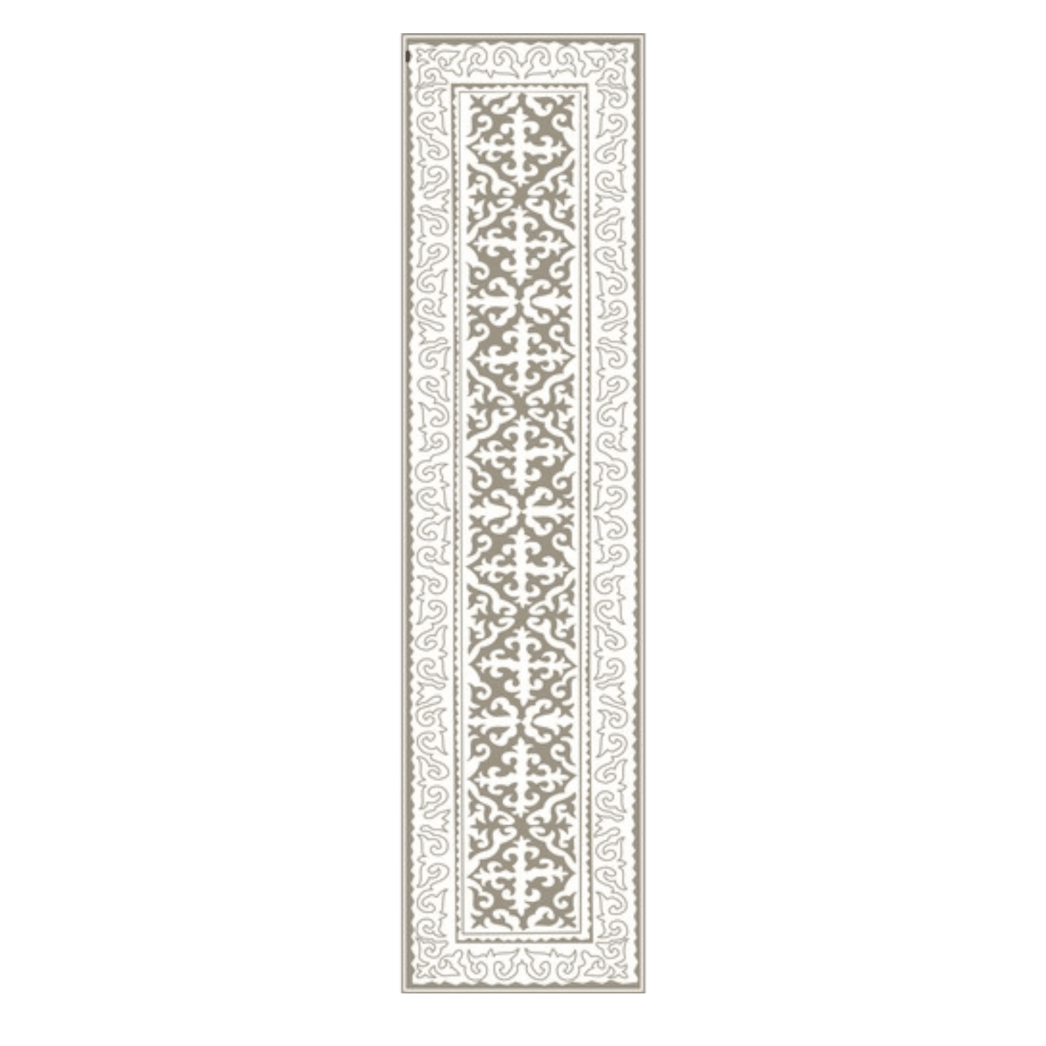 Stilīgs un praktisks plānā vinila paklājs, kas apvieno klasisku ornamentu dizainu ar mūsdienīgu funkcionalitāti. Smalkais raksts neitrālos toņos piešķir telpai eleganci un vieglumu, lieliski iederoties gan modernā, gan klasiskā interjerā.