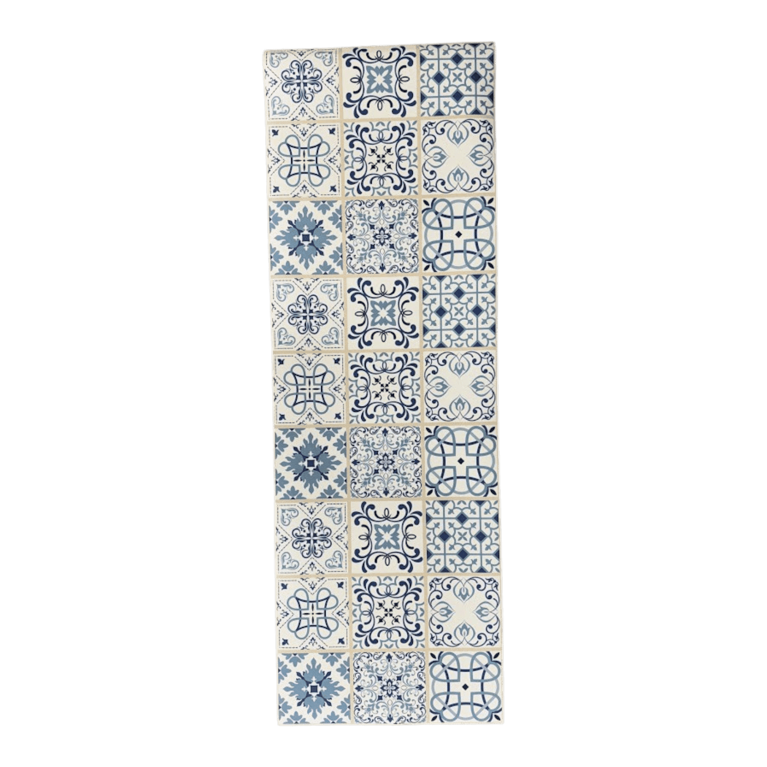 Vinila paklājs Budapest, 50x150cm apvieno praktiskumu ar estētisku pievilcību, ienesot jūsu mājoklī Vidusjūras un Grieķijas interjera noskaņas. Tā zilie un baltie toņi harmoniski kontrastē, radot svaigu un gaisīgu atmosfēru, kas lieliski papildina gan modernu, gan klasisku interjeru.