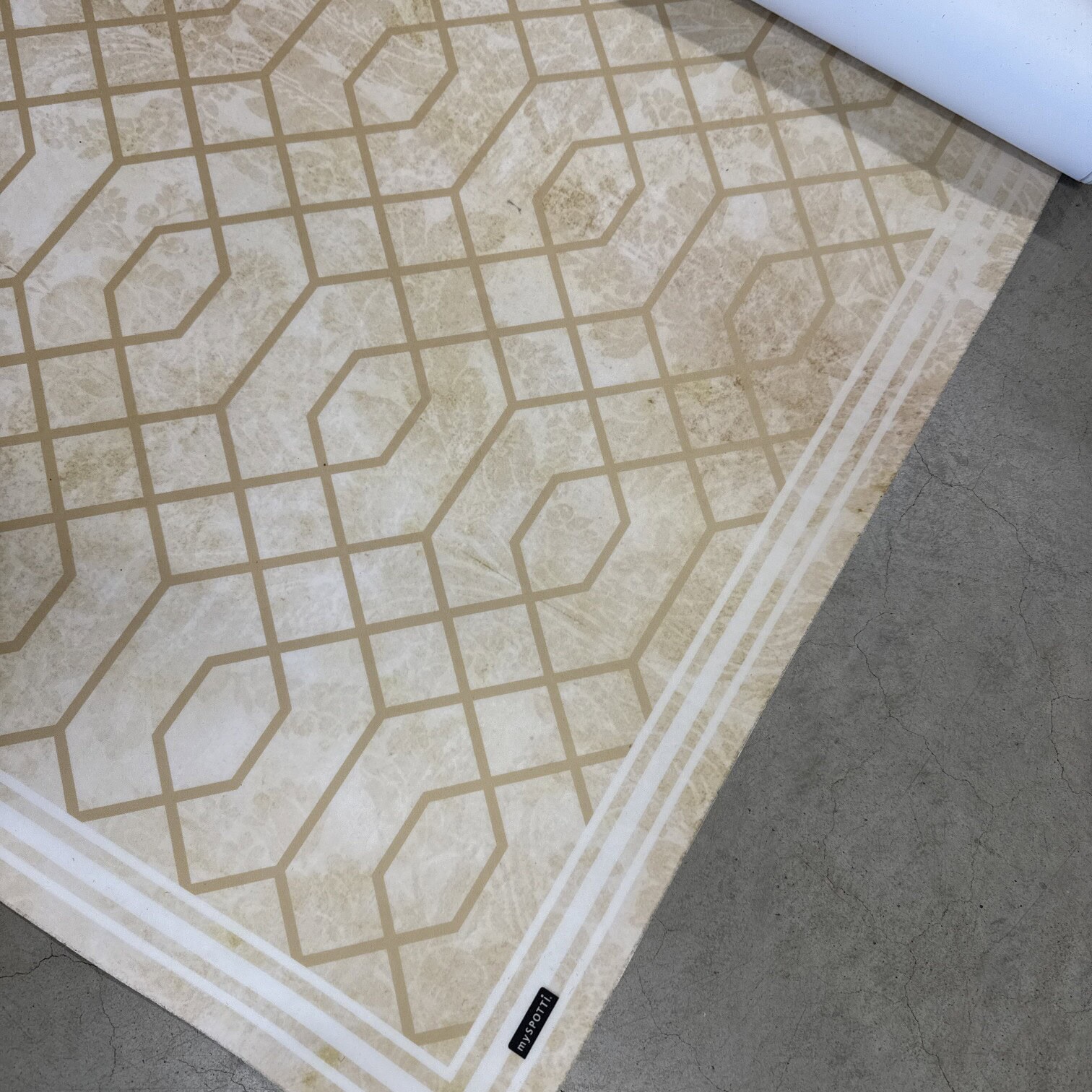 Elegants un praktisks vinila paklājs no MySpotti ar smalku ģeometrisku rakstu siltos, neitrālos toņos. Tas lieliski iederēsies gan modernā, gan klasiskā interjerā, piešķirot telpai vieglumu un vizuālu kārtību.