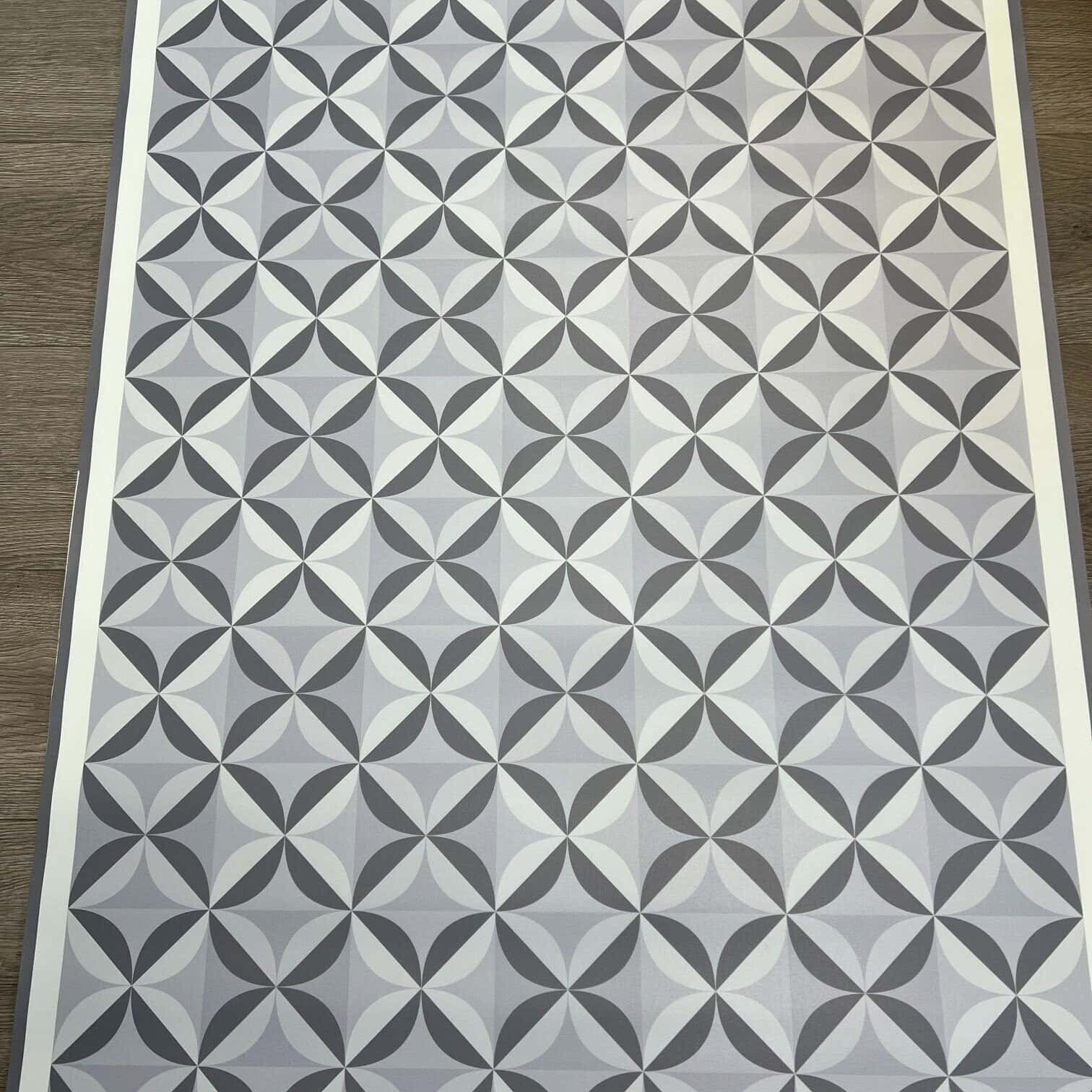 Vinila paklājs 80 × 250 cm ar elegantu ģeometrisku rakstu pelēkbalto toņu paletē ir praktisks un vizuāli harmonisks risinājums modernam interjeram. Regulārais ornaments piešķir telpai ritmu un sakārtotības sajūtu, vienlaikus saglabājot neitrālu, viegli kombinējamu noskaņu.