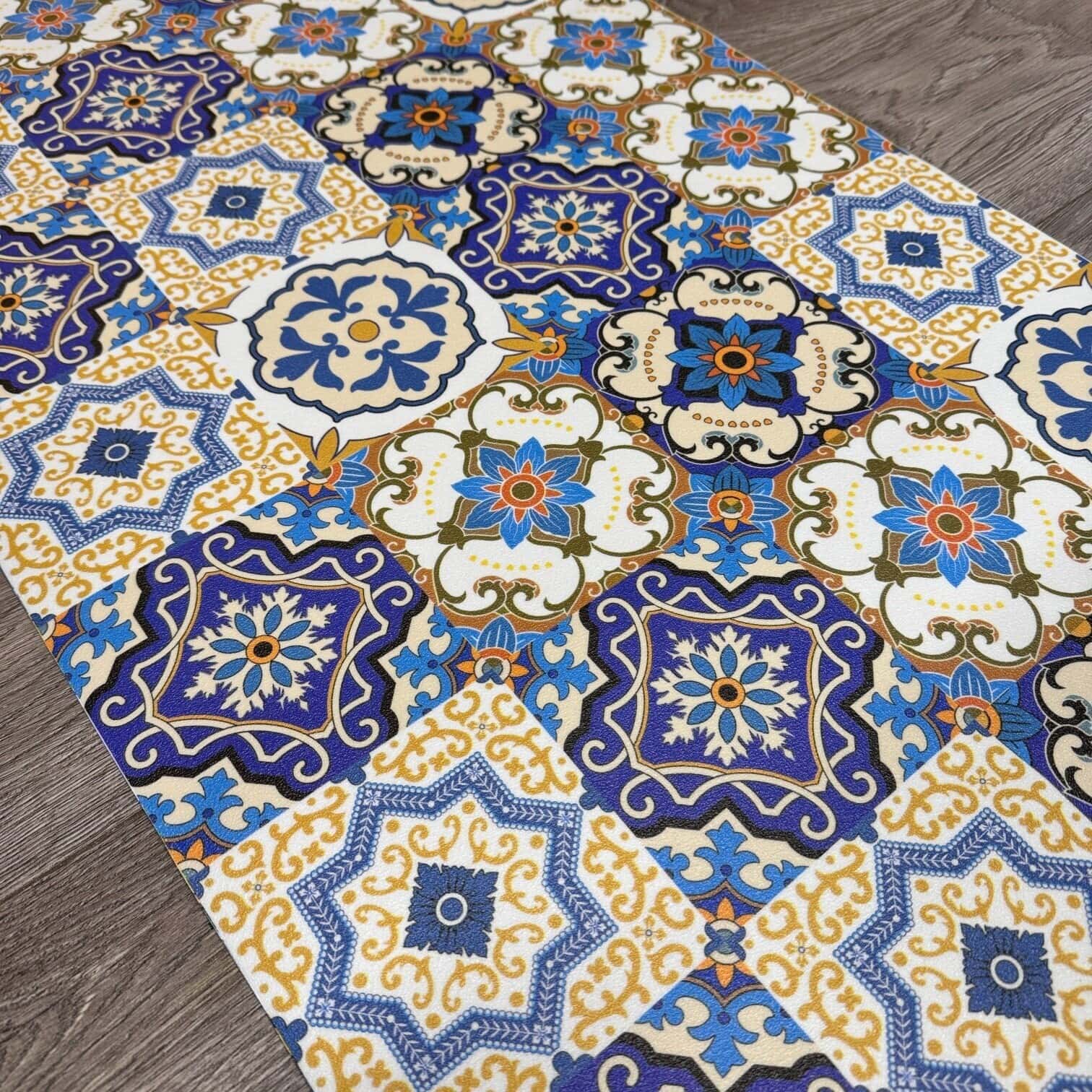 Iedvesmots no Vidusjūras flīžu rakstiem, tas piešķir telpai košumu un raksturu. Paklājs ir izturīgs, ūdensizturīgs un viegli kopjams, ideāli piemērots virtuvei, gaitenim vai vannasistabai. Apvieno dizainu ar ikdienas ērtībām.