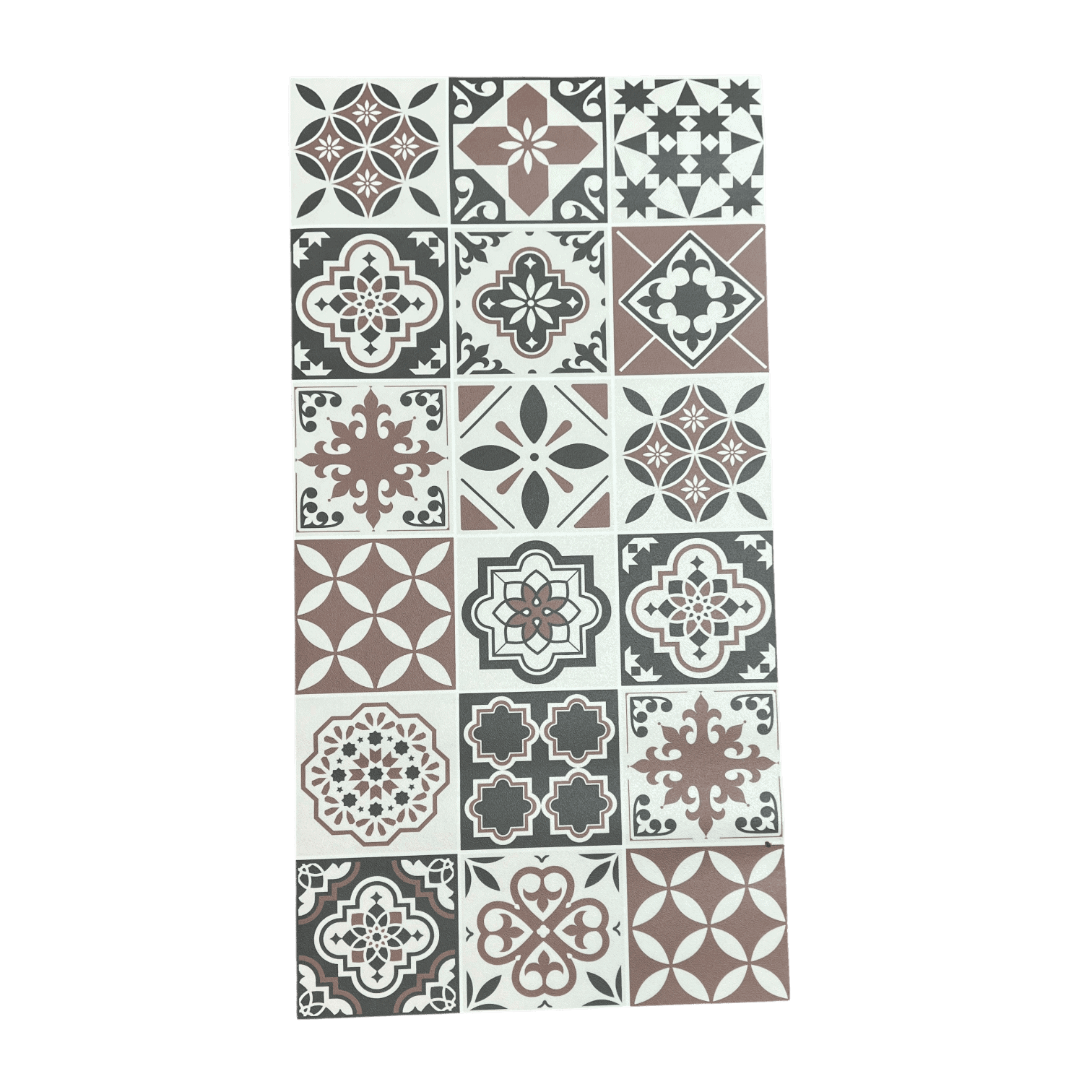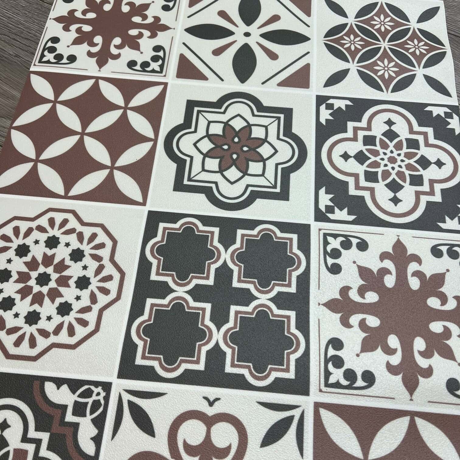 Vinila paklājs Tiles, 48x97cm ir praktisks interjera akcents, kas apvieno modernu dizainu ar izturīgu materiālu. Tā daudzkrāsainais ģeometriskais raksts piešķir telpai dinamiku un dzīvīgumu, padarot to par lielisku izvēli gan virtuvei, gan gaitenim, gan dzīvojamai istabai.