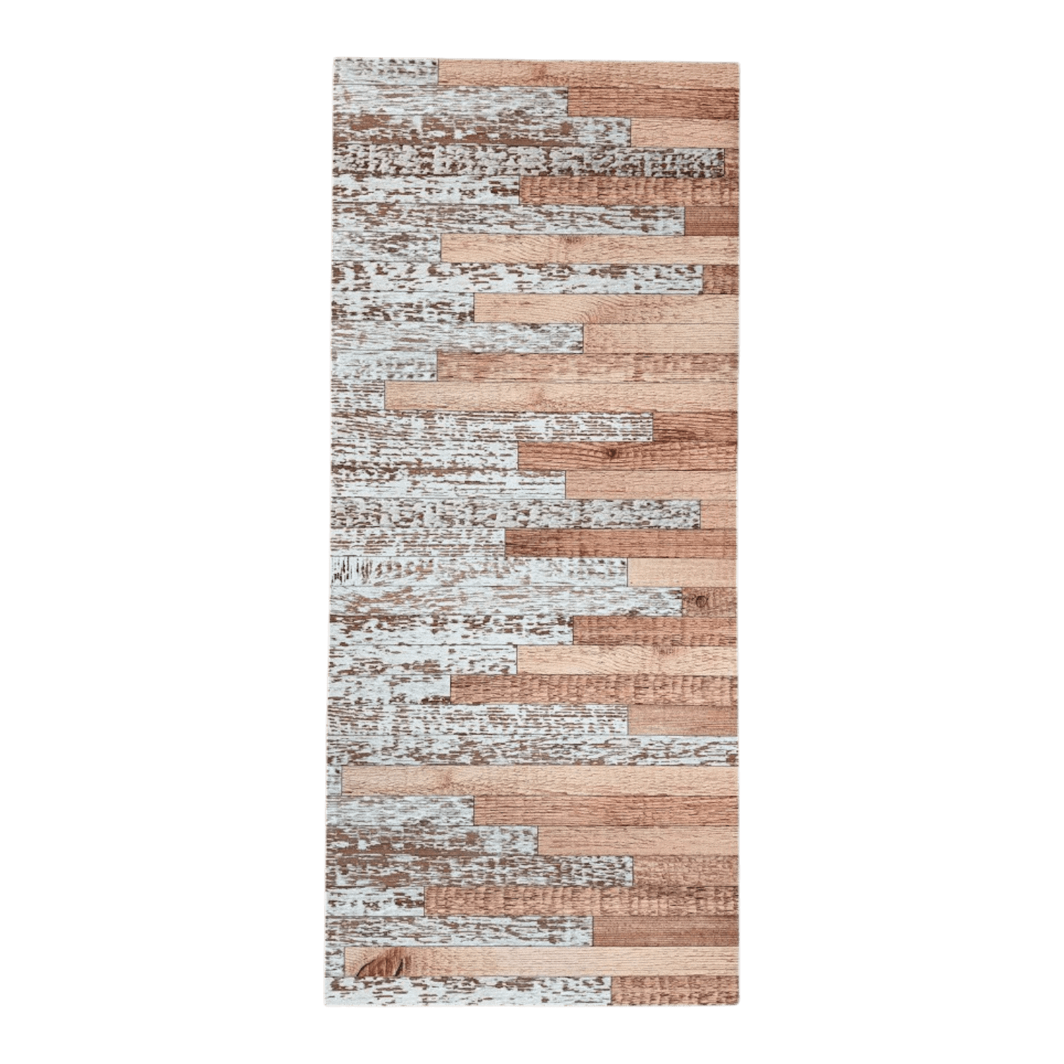 Paklājs ir mitrumizturīgs, viegli tīrāms un lieliski piemērots ikdienas lietošanai virtuvē, gaitenī vai citās intensīvi izmantotās telpās. Plakanā struktūra nodrošina stabilitāti un drošību, savukārt koka imitācijas raksts rada estētisku un siltu noskaņu.