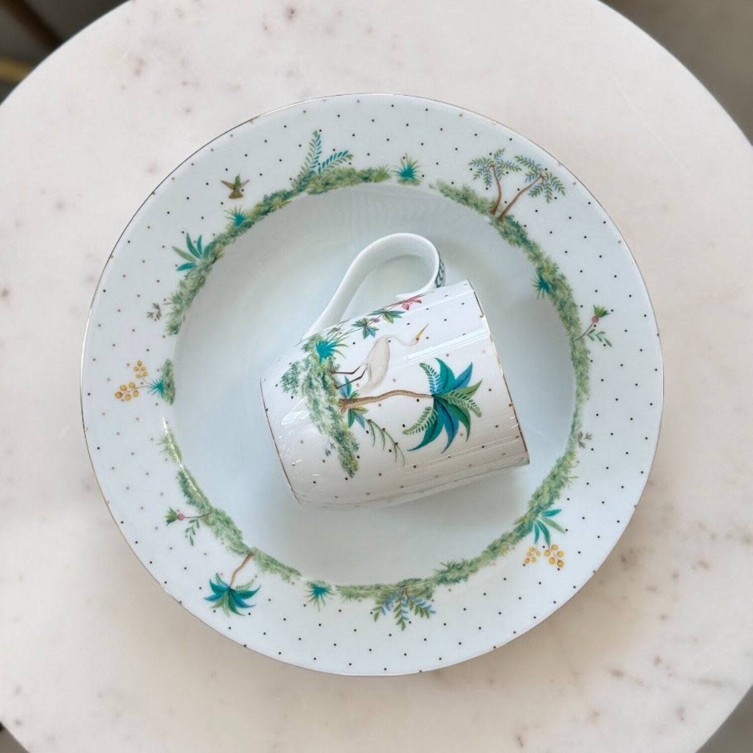 Ap šķīvja centru izvietoti eksotisku augu motīvi, kas piešķir traukam tropisku un iedvesmojošu raksturu. Ideāli piemērots ne tikai zupām, bet arī pastas ēdieniem vai salātiem.