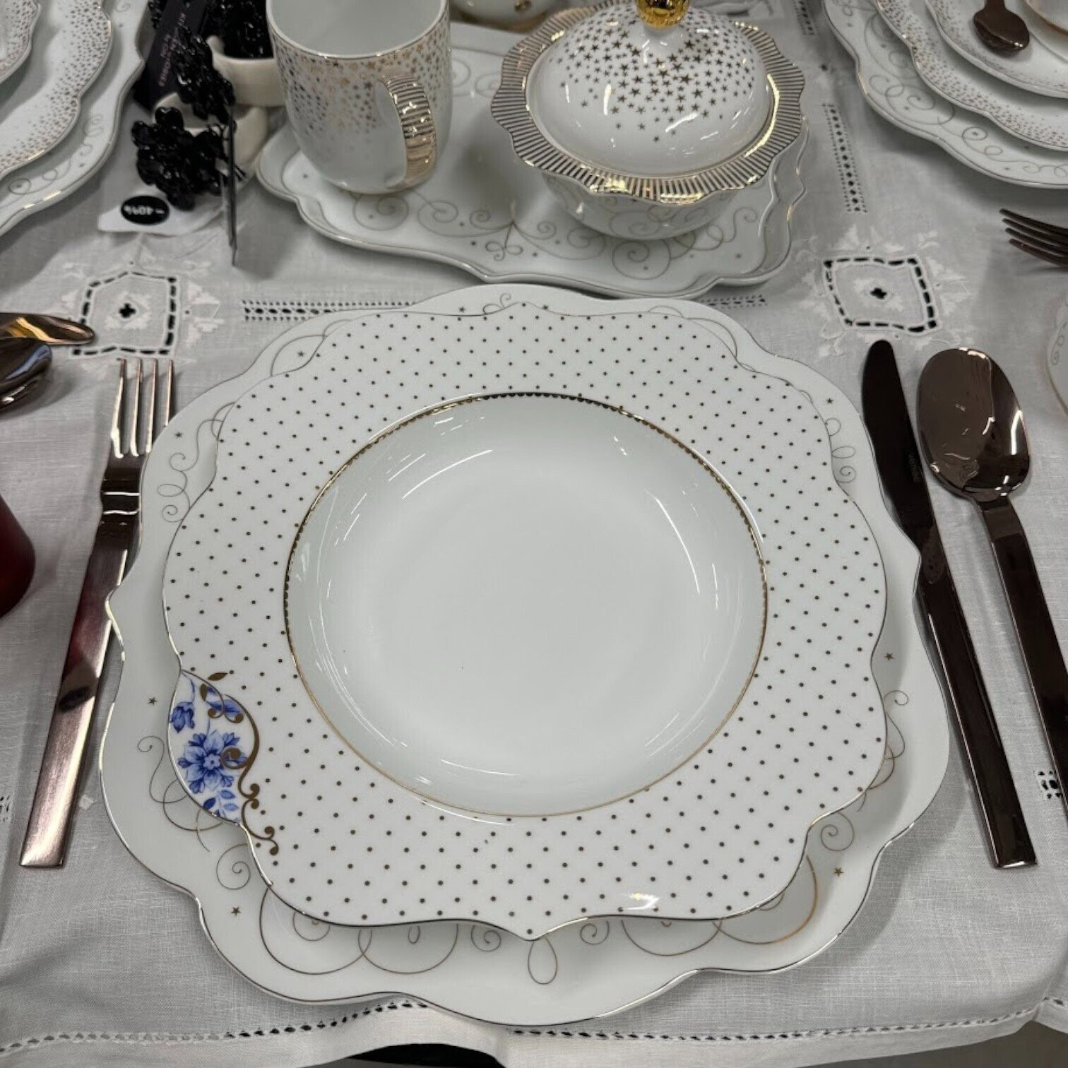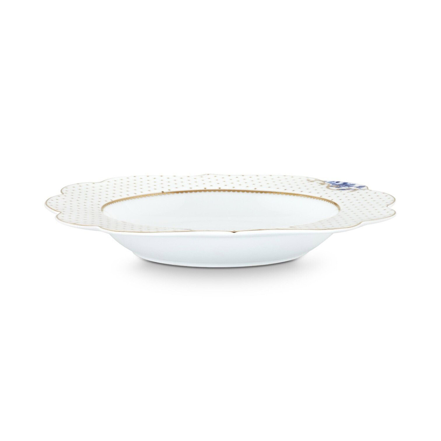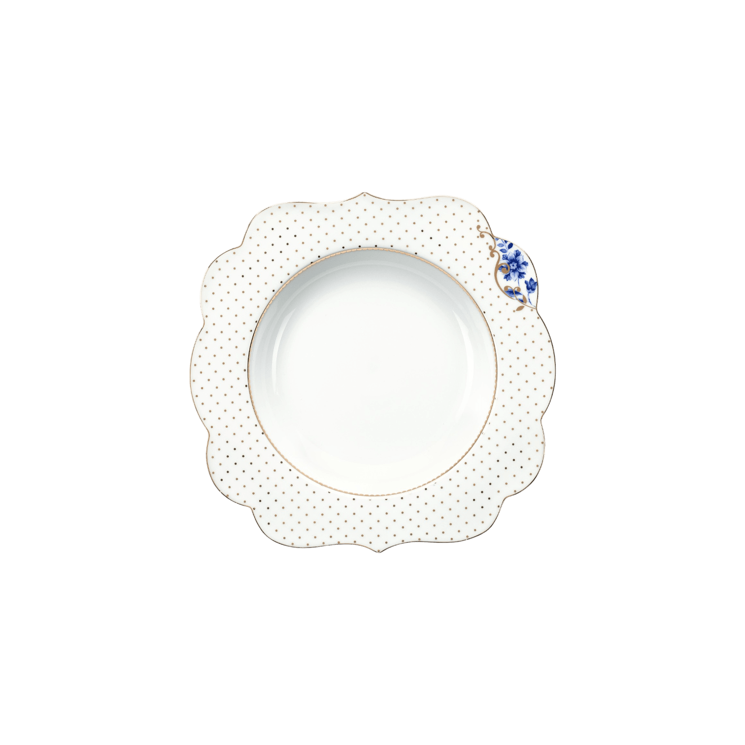 Radiet maģiskus mirkļus pie galda ar šķīvi no Royal White kolekcijas. Zupas šķīvis Royal White ir no izsmalcināta porcelāna ar smalkiem ziliem un zelta elementiem.