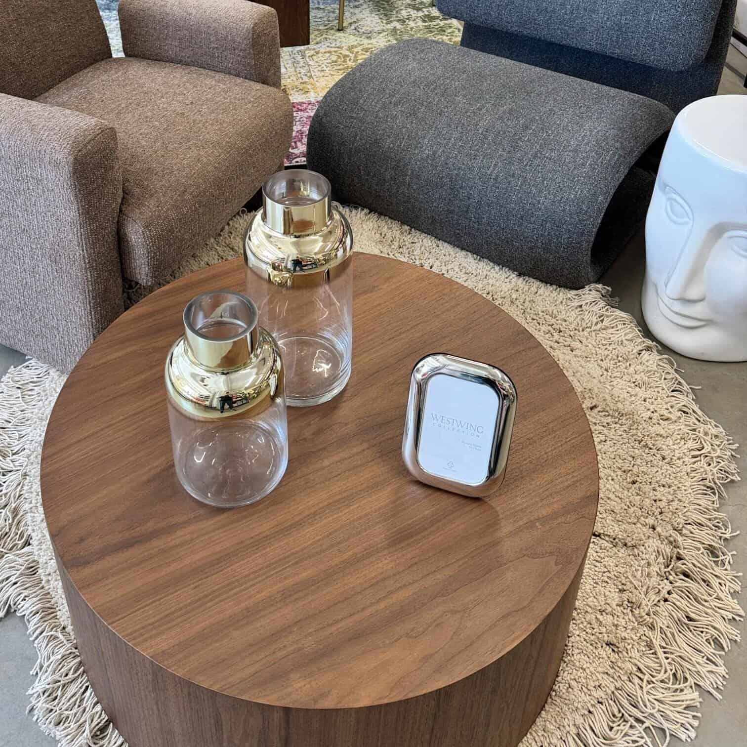 Šis ir moderns, apaļas formas žurnālgaldiņš ar elegantu, dabīga koka apdari. Tā vienkāršā, bet izsmalcinātā forma piešķir interjeram harmoniju un mūsdienīgu akcentu. Stabilā konstrukcija nodrošina praktiskumu ikdienas lietošanā, savukārt gludā virsma ir ideāli piemērota gan dekoratīvu priekšmetu izvietošanai, gan ikdienas vajadzībām.