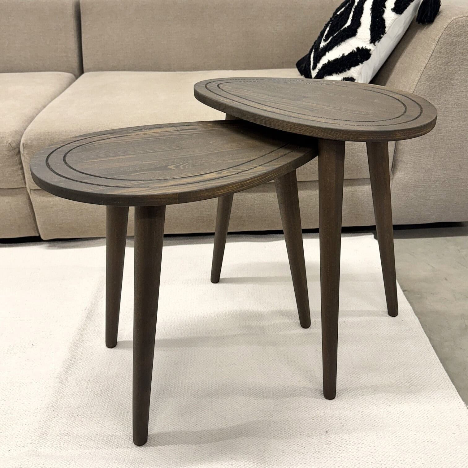Žurnālgalds Edgar I – pievienojiet savai viesistabai eleganci un funkcionalitāti ar šo izsmalcināto divu koka žurnālgaldu komplektu.