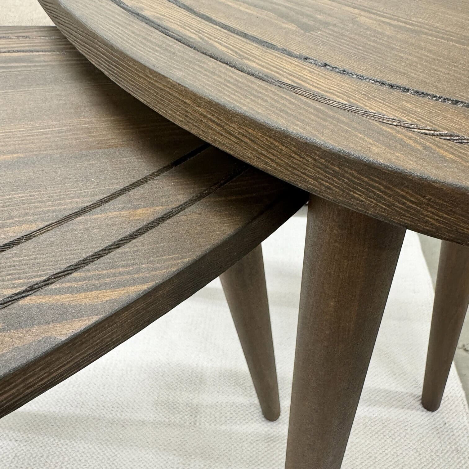 Galdi ir dažāda augstuma, kas ļauj tos pārklāt vai izmantot atsevišķi atkarībā no vajadzībām un telpas iekārtojuma. Noapaļotās formas un precīzi veidotās malas piešķir mēbelei mūsdienīgu, bet tajā pašā laikā mājīgu izskatu. Stabilās, koniskās kājas nodrošina izturību un harmonisku dizainu.
