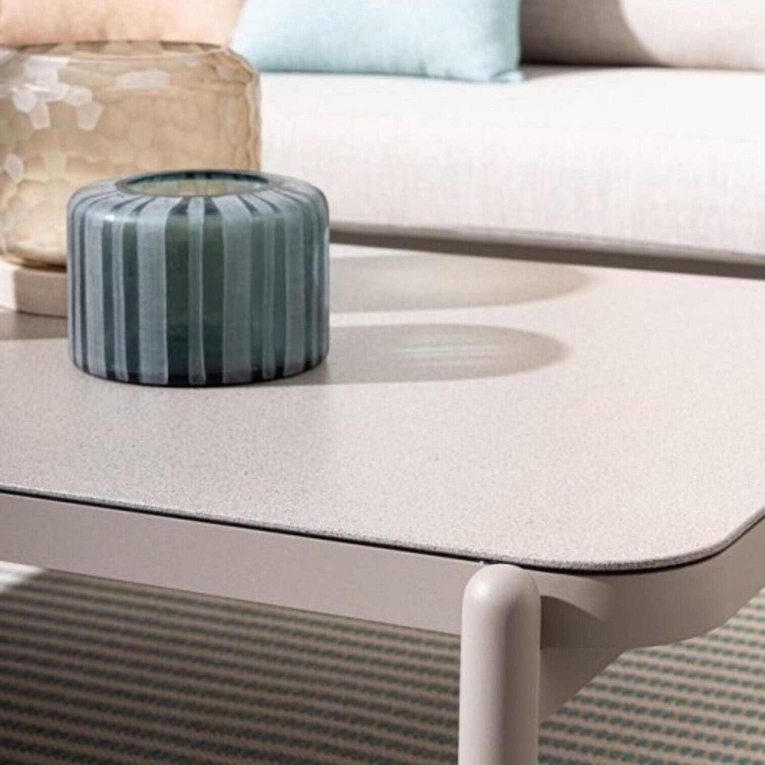 Mūsdienīgs un elegants žurnālgalds ar tīru, līdzsvarotu dizainu, kas lieliski piemērots gan āra, gan iekštelpu atpūtas zonām. Taisnstūra formas galda virsma ar akmens faktūras apdari piešķir galdam izsmalcinātu un modernu raksturu, savukārt slaidās kājas nodrošina vizuālu vieglumu un stabilitāti.