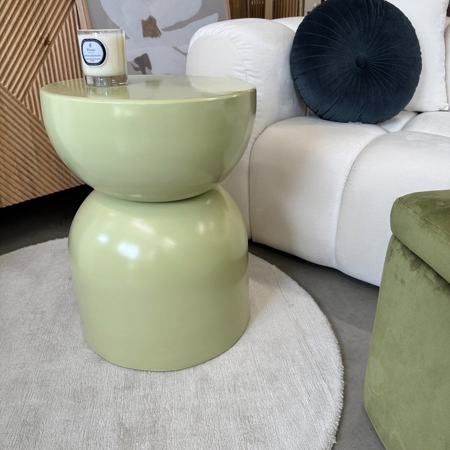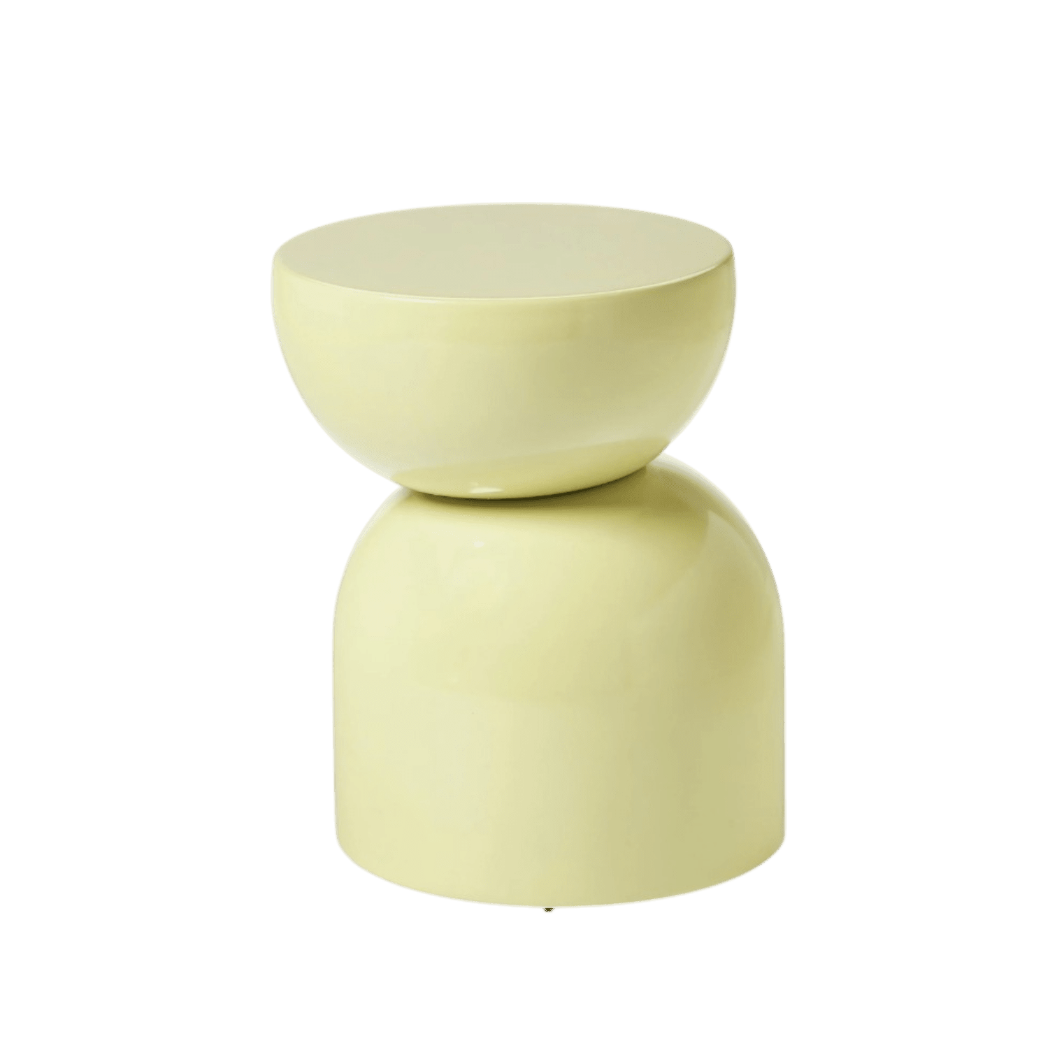 Šis kafijas galdiņš ir moderns un stilīgs interjera elements ar unikālu dizainu. Tas sastāv no divām daļām, kur abas formas atgādina apgrieztas, gludi noapaļotas puslodes. Galdiņa virspuse ir plakana, kas nodrošina praktisku lietojumu, savukārt kopējā forma piešķir skulpturālu un māksliniecisku izskatu.