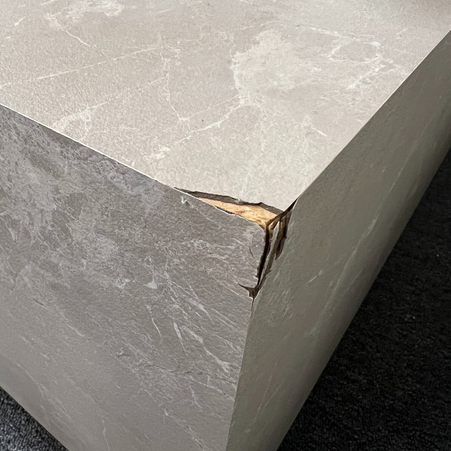 SVARĪGI: Žurnālgaldam ir defekts, kurš redzams bildē