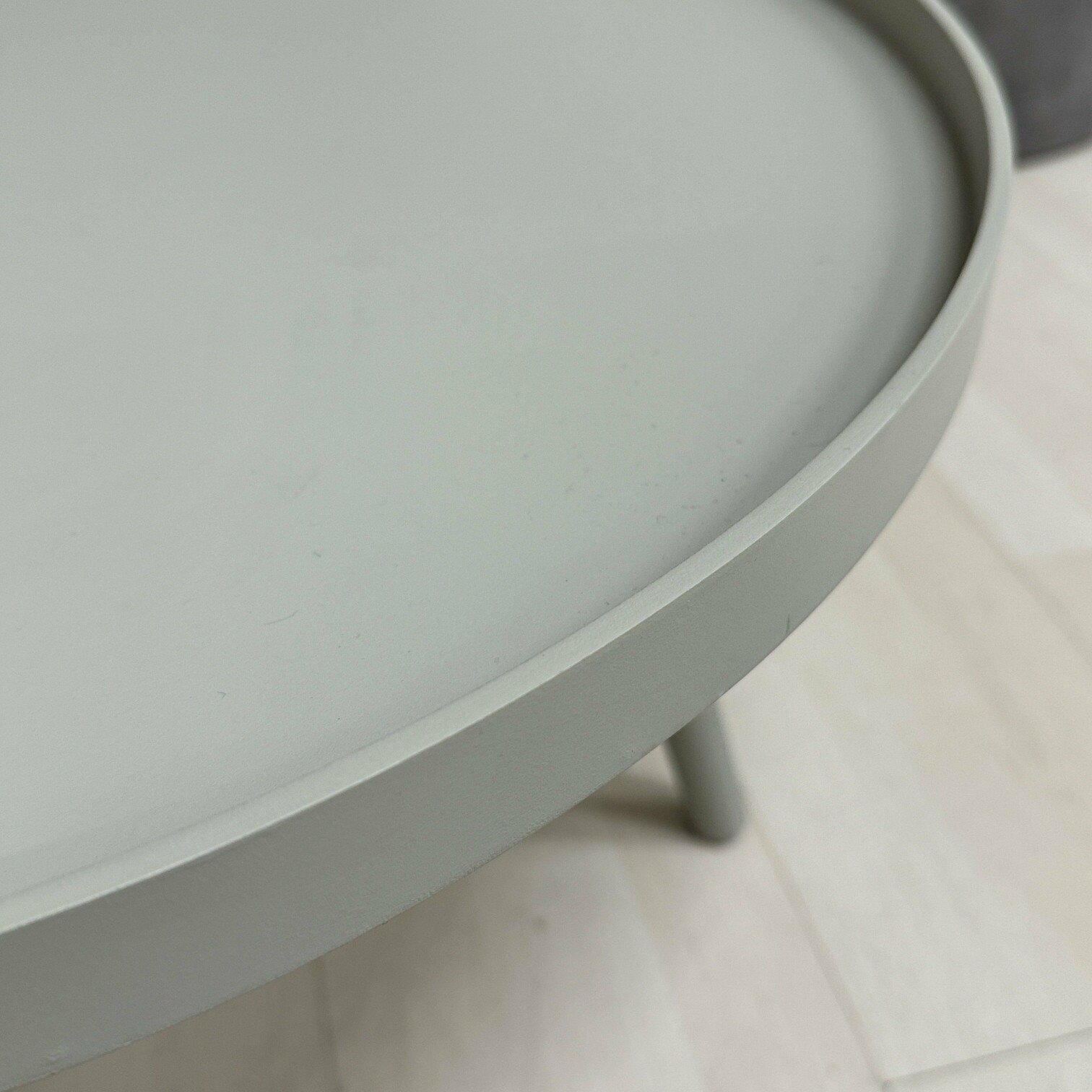 Krāsa nenosakāmi gaiša, galdiņš viegls un ērts pārvietošanai, paaugstinātās malas nodrošina, ka visas esošās lietas tik viegli no tā nenoripos.